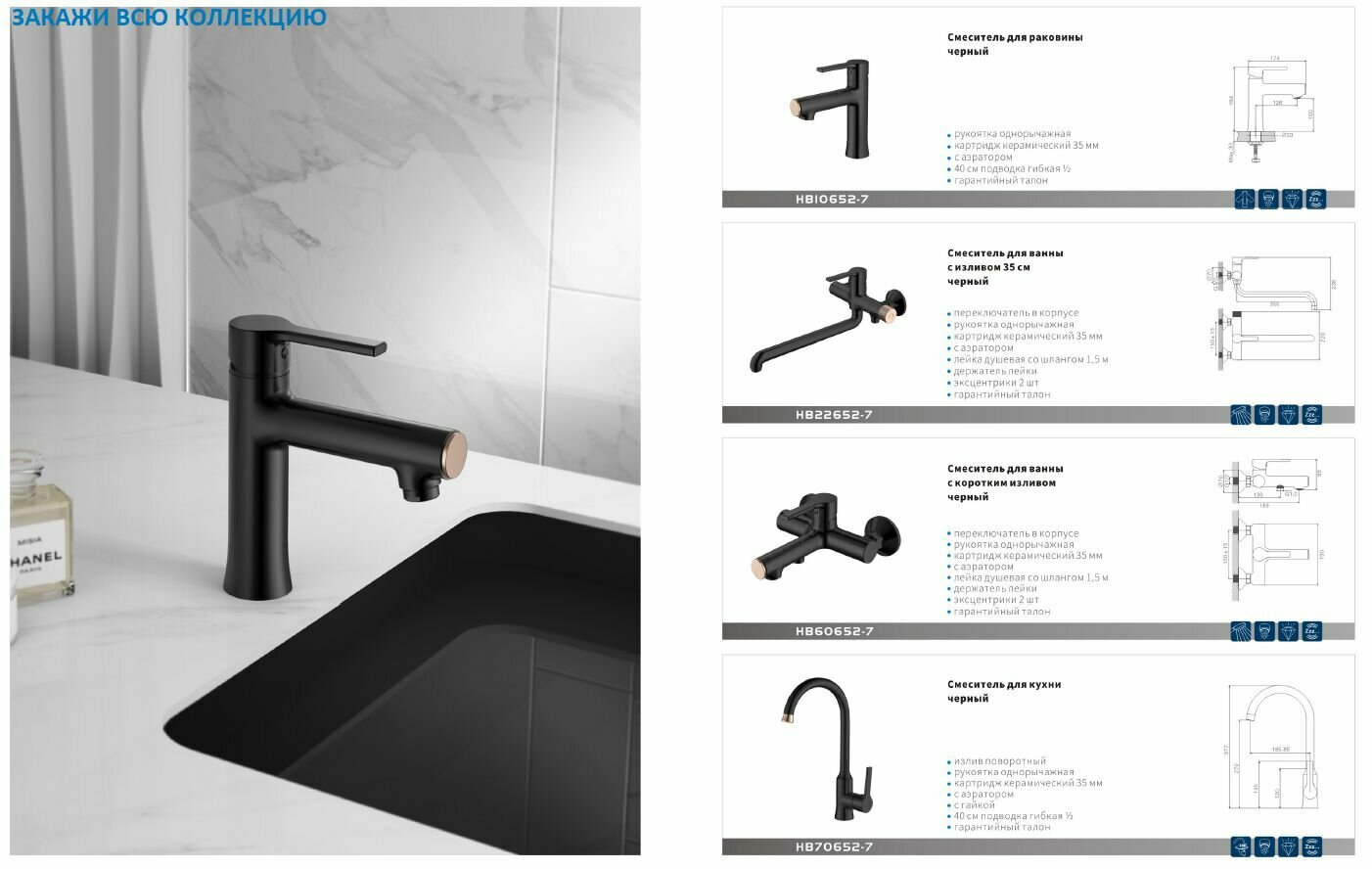 Смеситель для раковины Haiba, HB10652-7 , черный