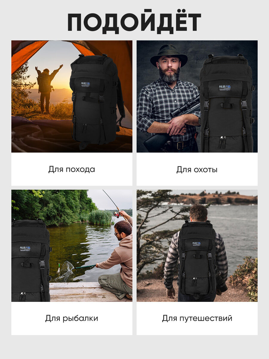 Трекинговый рюкзак POLAR П930, разгрузки на груди и животе, увеличение на треть, суперпрочный, чёрный