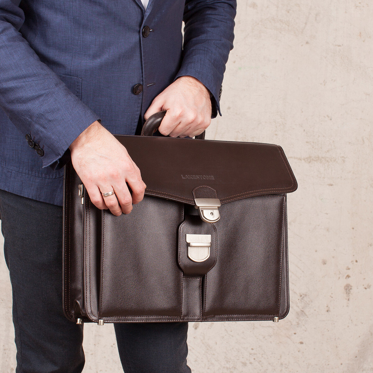 Купить Вместительный кожаный портфель Lakestone Farington Brown