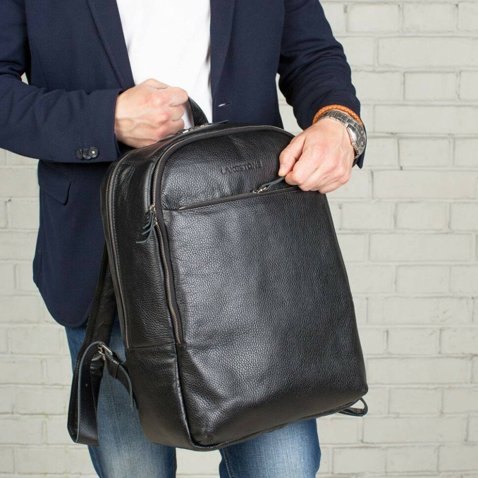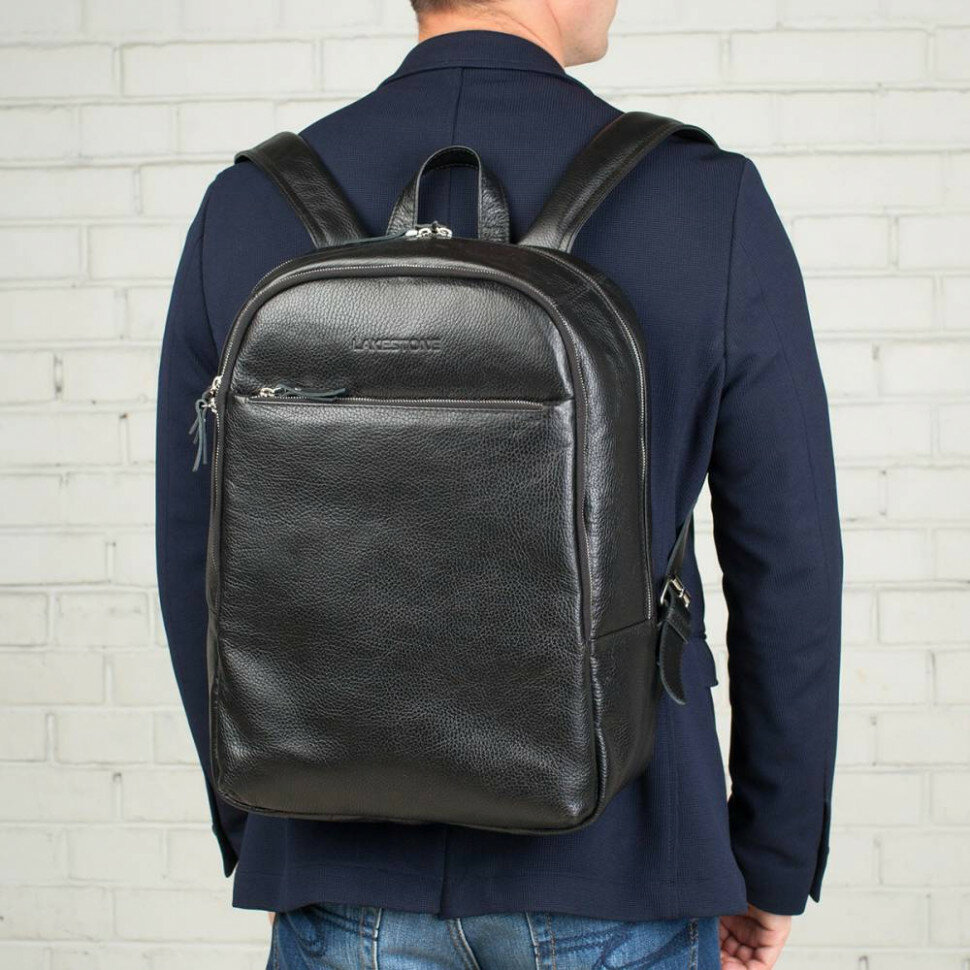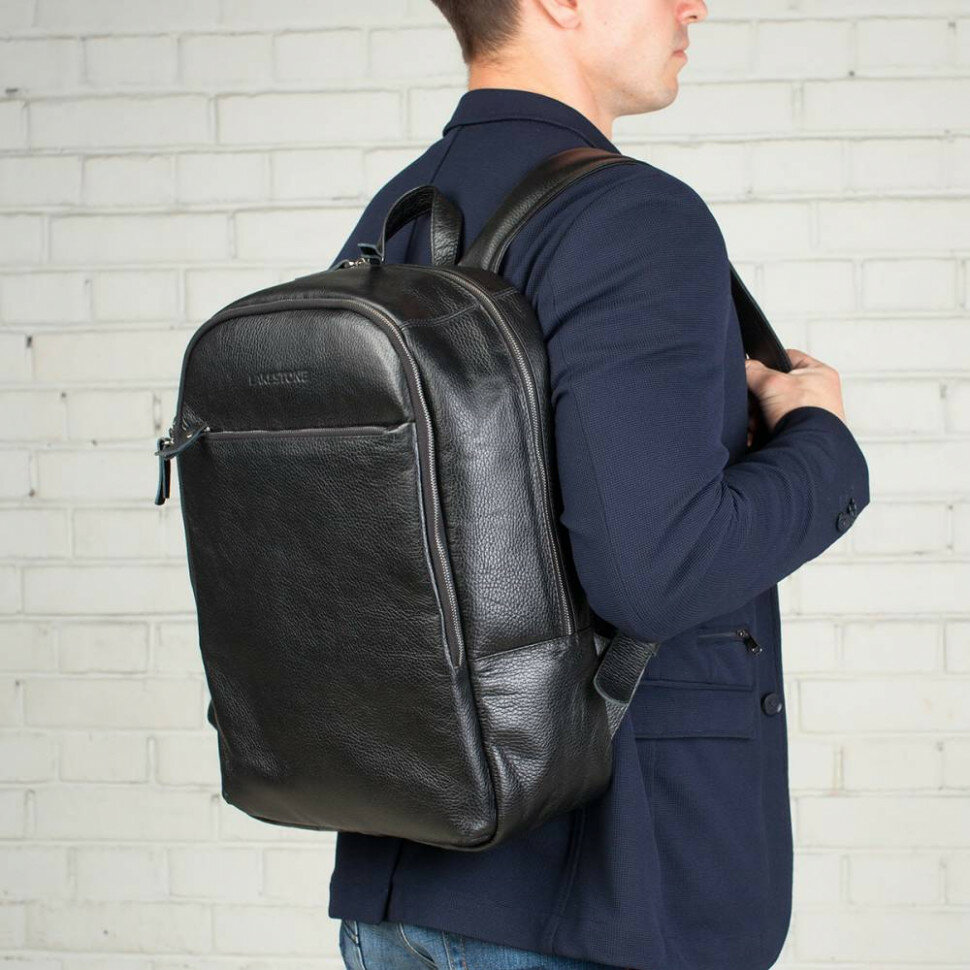 Мужской кожаный рюкзак для ноутбука LAKESTONE Faber Black 918304/BL интересное: