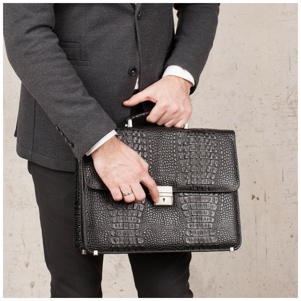 Портфель Lakestone Braydon Black Caiman интересное: