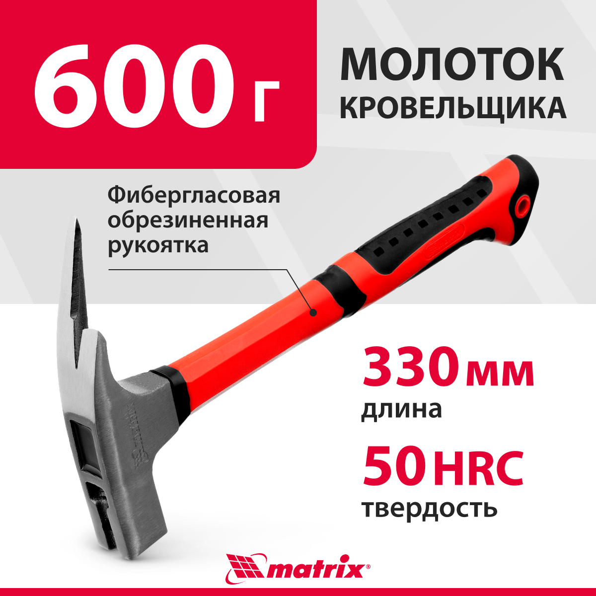 Молоток кровельщика, 600 г, фибергласовая обрезиненная рукоятка Matrix