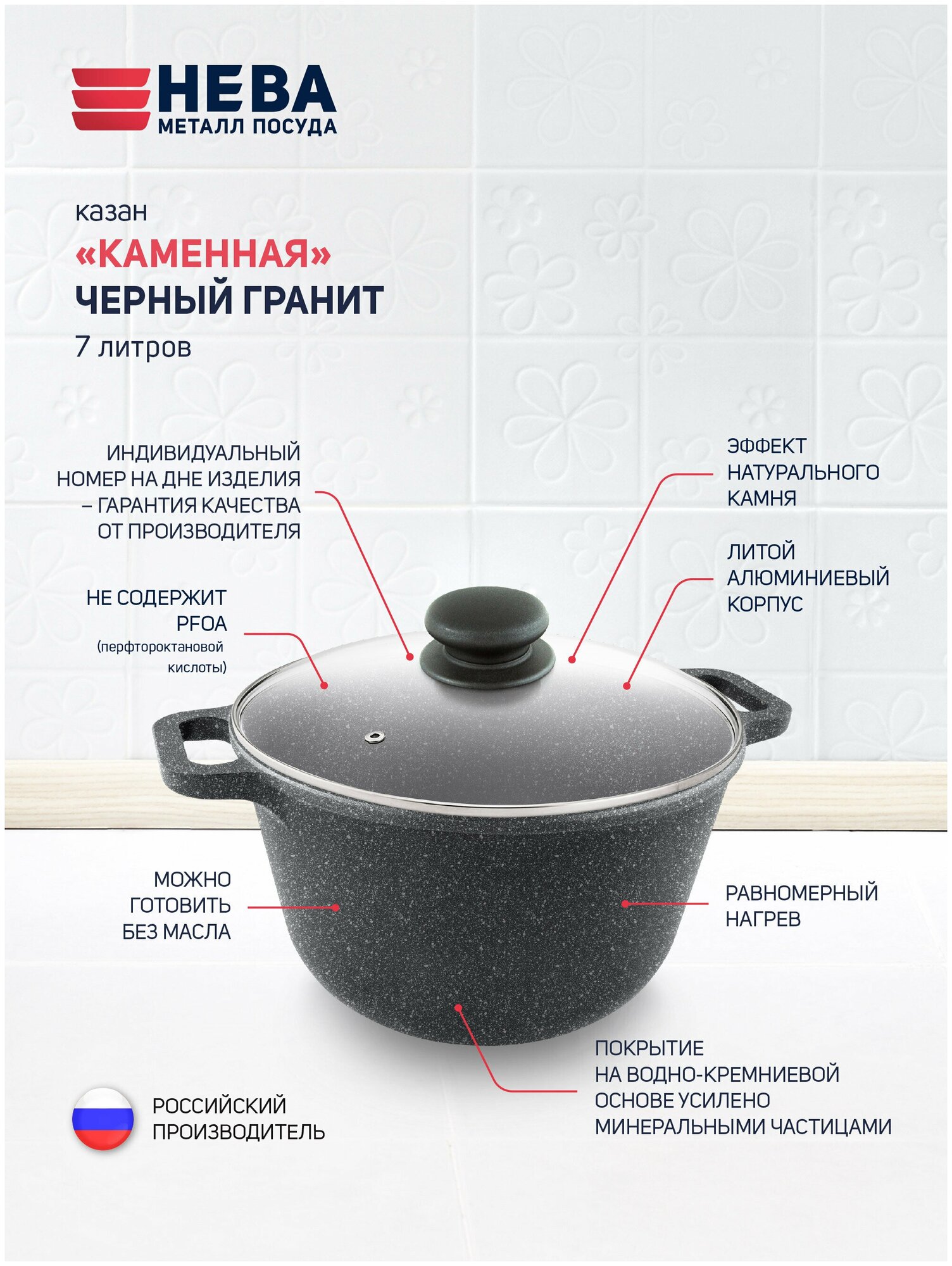 Казан Нева Металл Посуда НМП "Каменная" Чёрный гранит со стеклянной крышкой 7л, 186870 интересное: