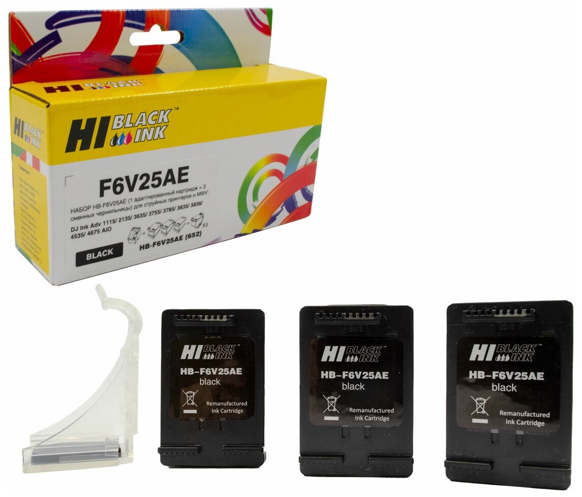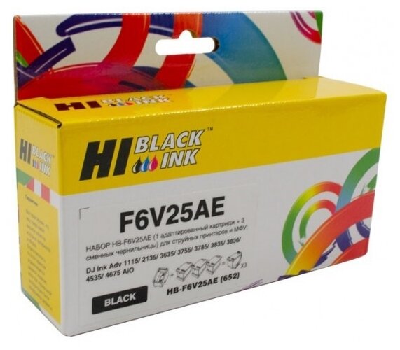 Купить Набор Hi-Black F6V25AE №652 (1 адапт. картридж+ 3 сменных чернильницы) для HP DeskJet 1115/3636, черный
