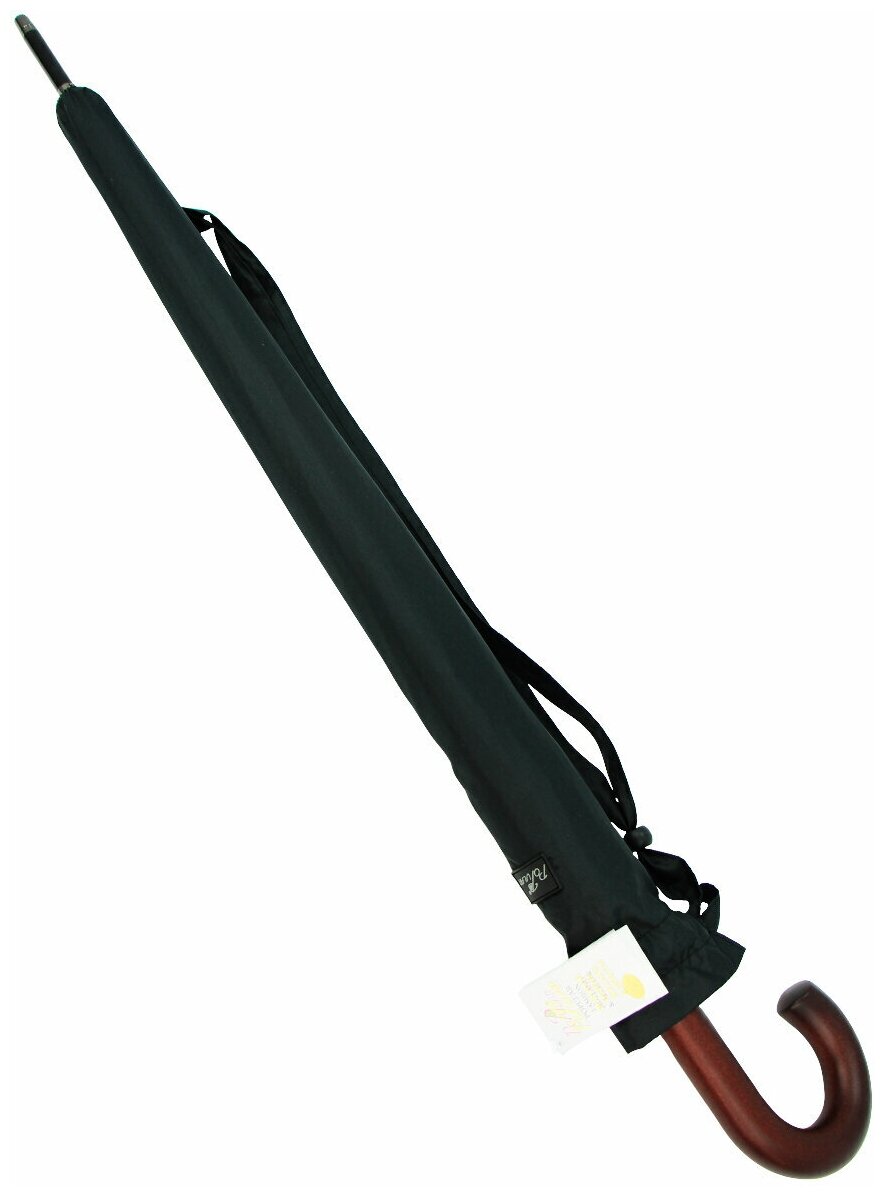 Зонт-трость Popular, полуавтомат, купол 125 см., 24 спиц, деревянная ручка, система «антиветер», чехол в комплекте, черный, коричневый