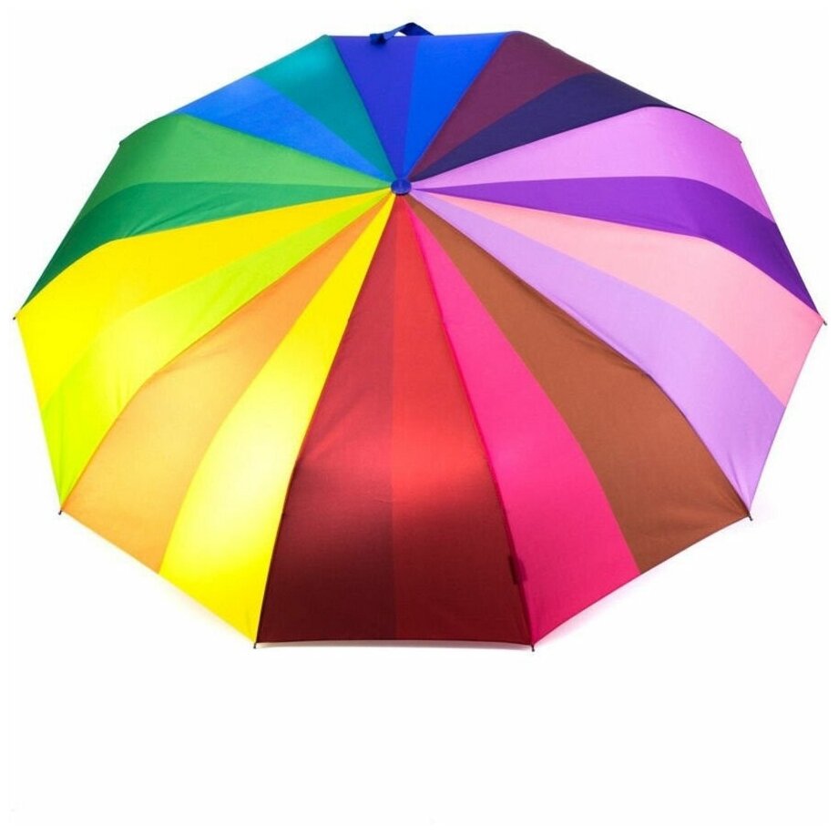 Зонт "Радуга" 3 - х сложения / Автоматический, Диаметр 104 см. / Фиолетовая ручка и чехол интересное: