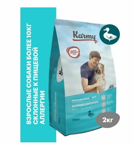 Сухой корм Karmy Hypoallergenic Medium&Maxi Утка - для собак средних и крупных пород, склонных к пищевой аллергии 2кг