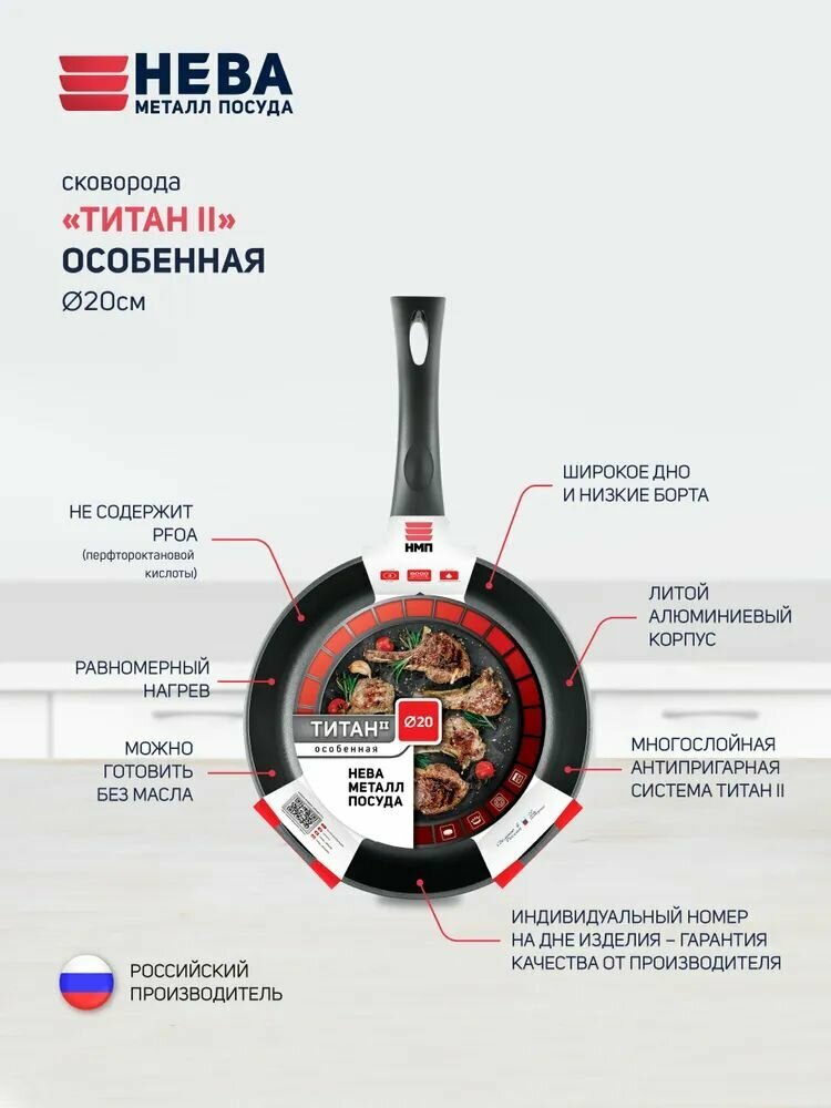 Сковорода Нева Металл Посуда, Титан "Особенная", 22 см, несъемная ручка