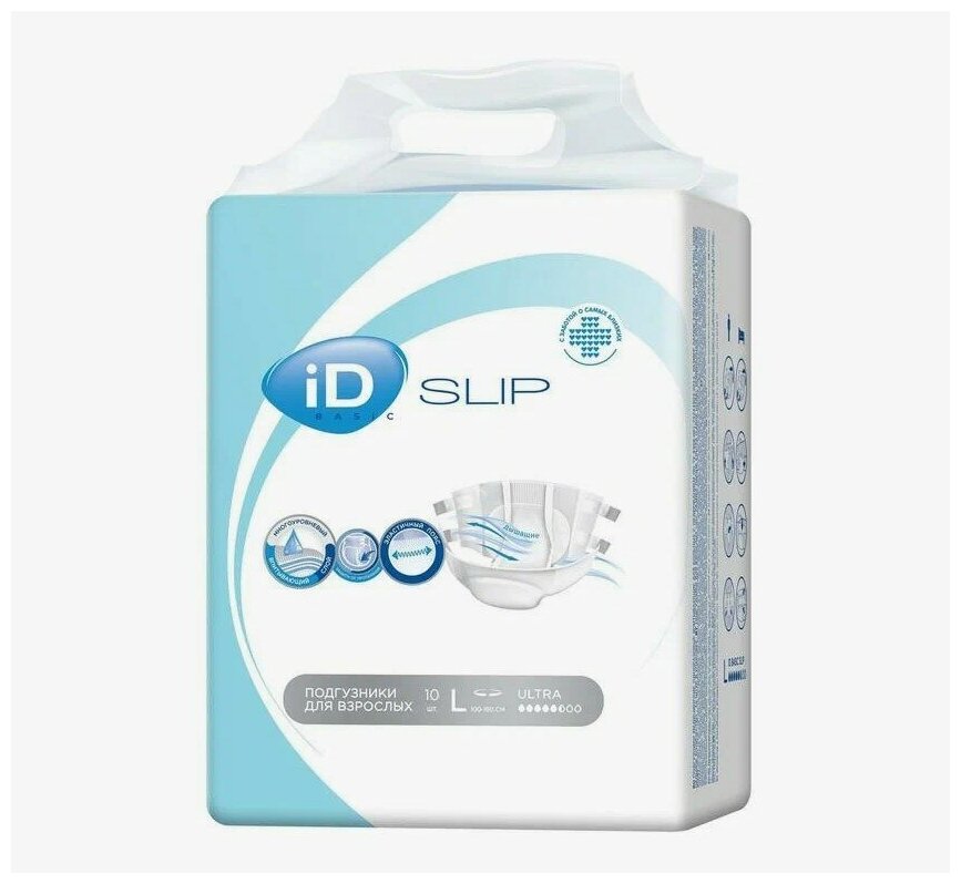 Купить iD Slip Basic L | Подгузники для взрослых | Premium качество | С индикатором влагонасыщения | 10 шт