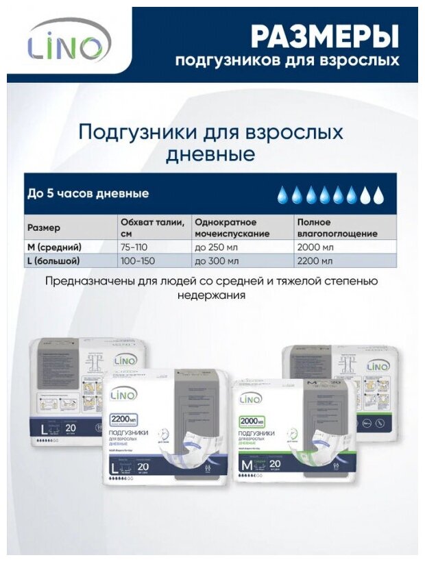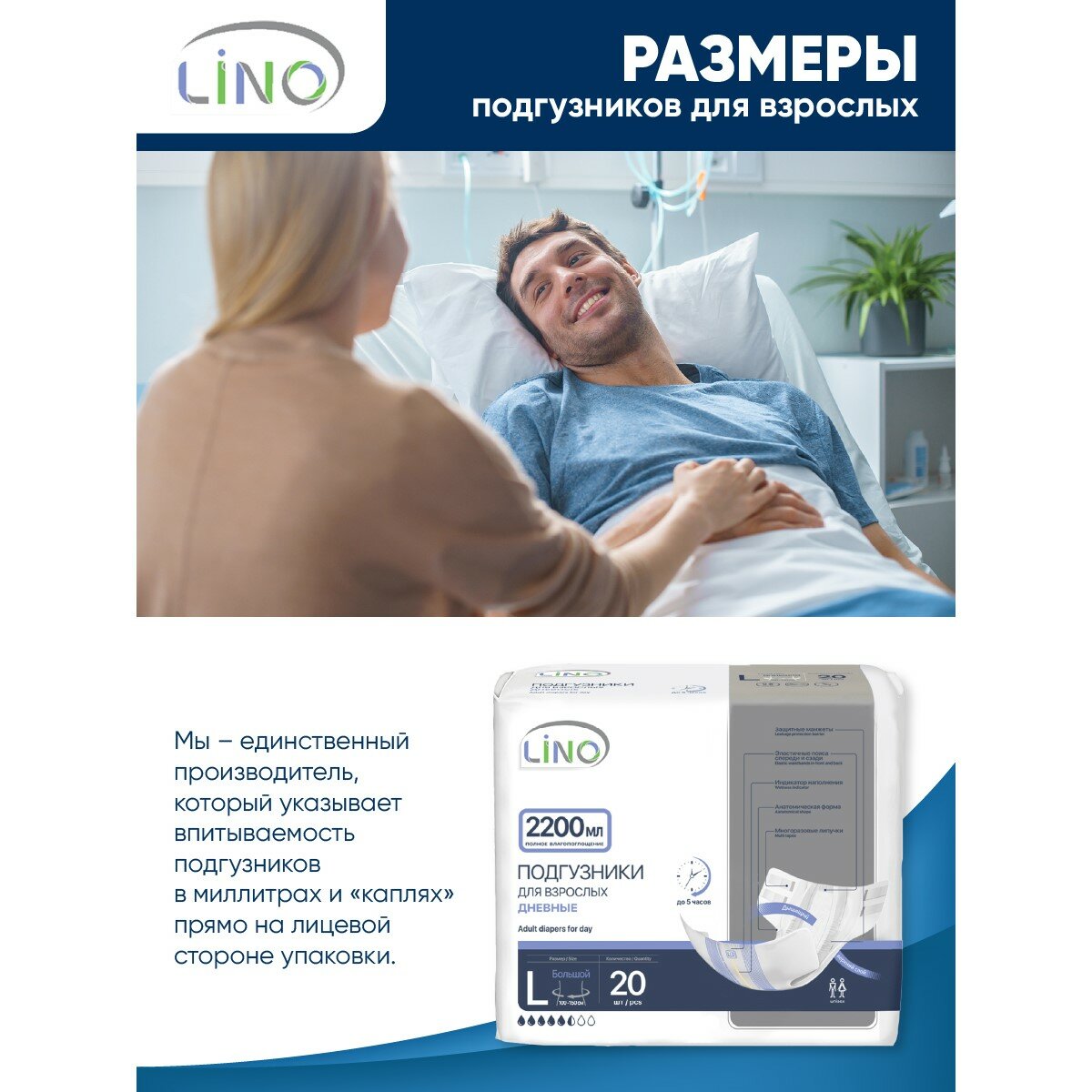 Подгузники для взрослых LINO дневные, размер L (100-150 см), 20 шт интересное:
