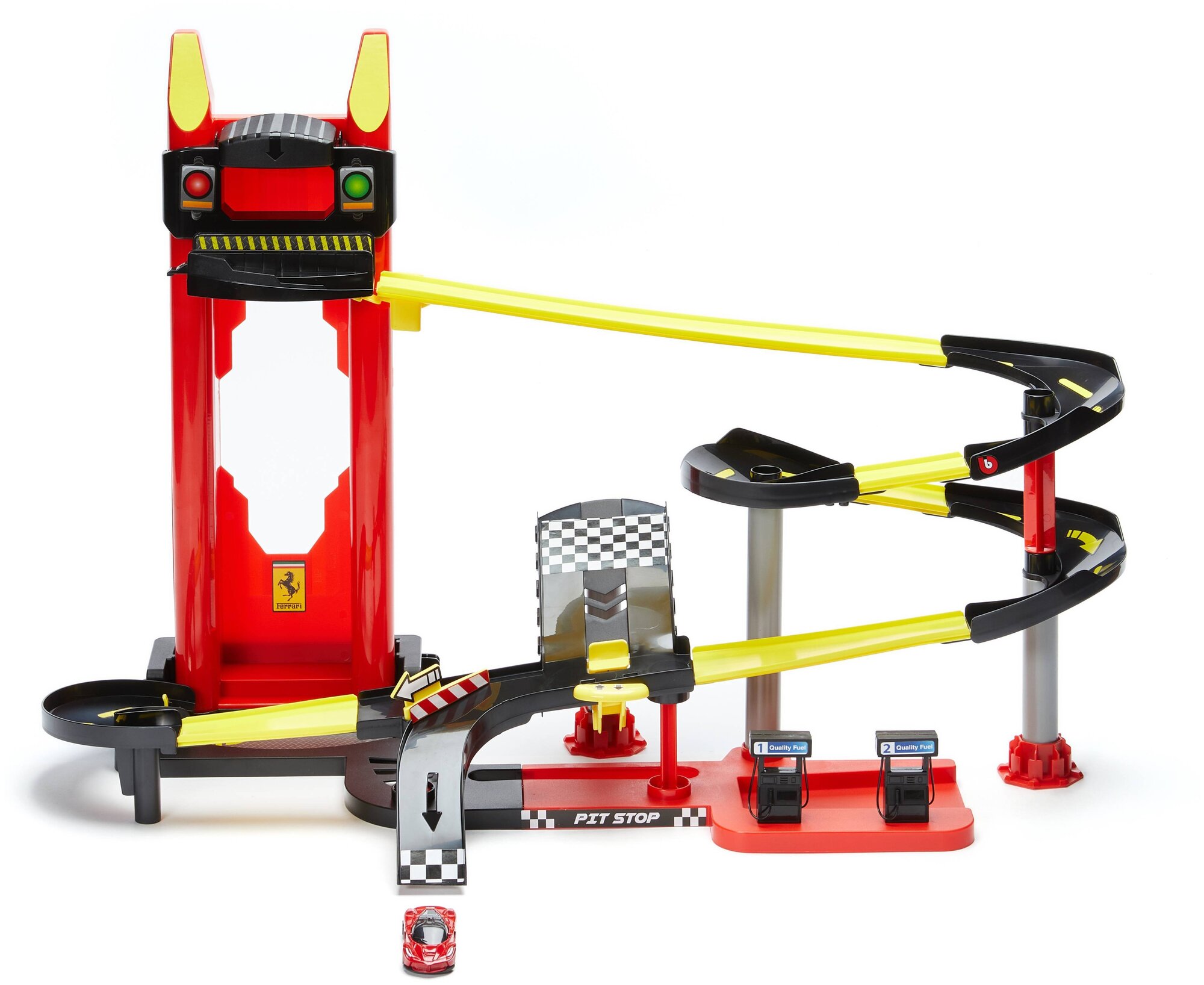 | Комплектация | многоуровневый скоростной трек, многофункциональный автомобильный погрузчик, рабочий автоматический лифт, 1 машинка Ferrari Evolution, наклейки в комплекте |