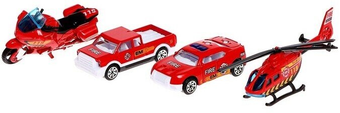 Парковка «Пожарная станция» Автоград с машинками и вертолетом, металл, в коробке (660)