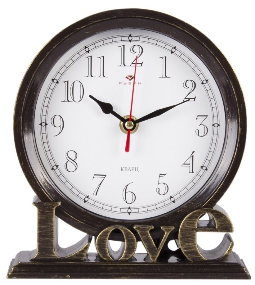 Часы настольные Рубин 19х17 см, корпус коричневый с золотом "Классика" (1916-001) интересное: