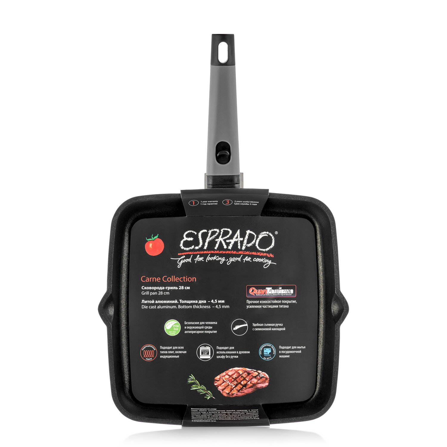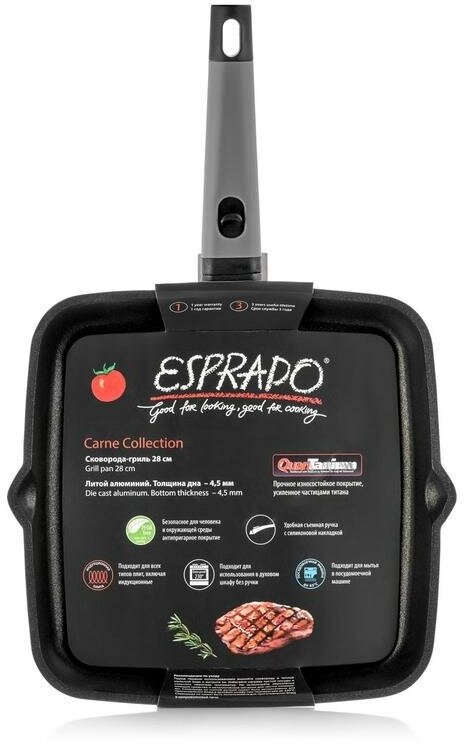 СохранитьСковорода-гриль ESPRADO Carne, индукция, 28 см, со съемной ручкой интересное: