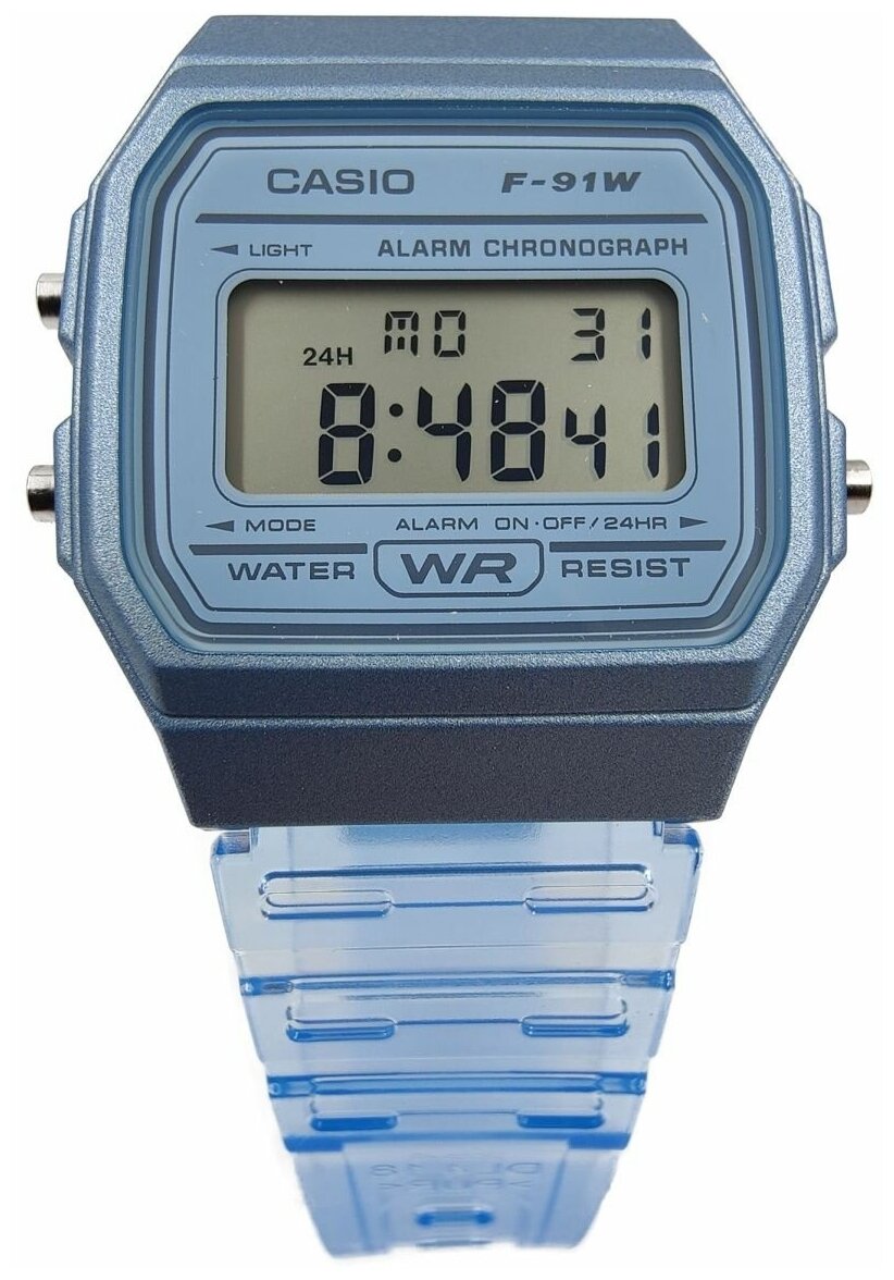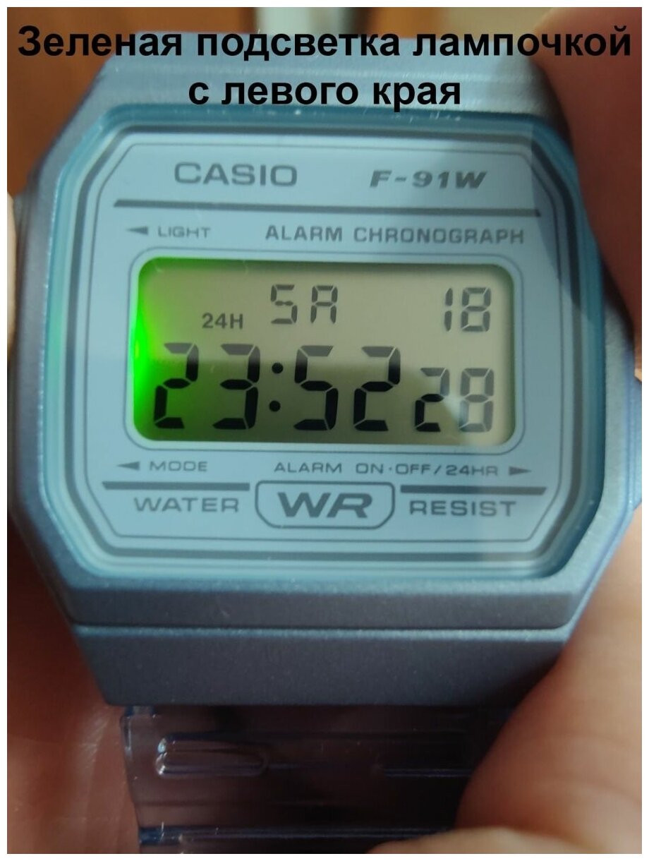 F-91WS-8E Casio наручные часы кварцевые WR30 (3 атм) мужские, женские серый, бесцветный секундомер будильник отображение числа, отображение дня недели подсветка дисплея акриловое стекло