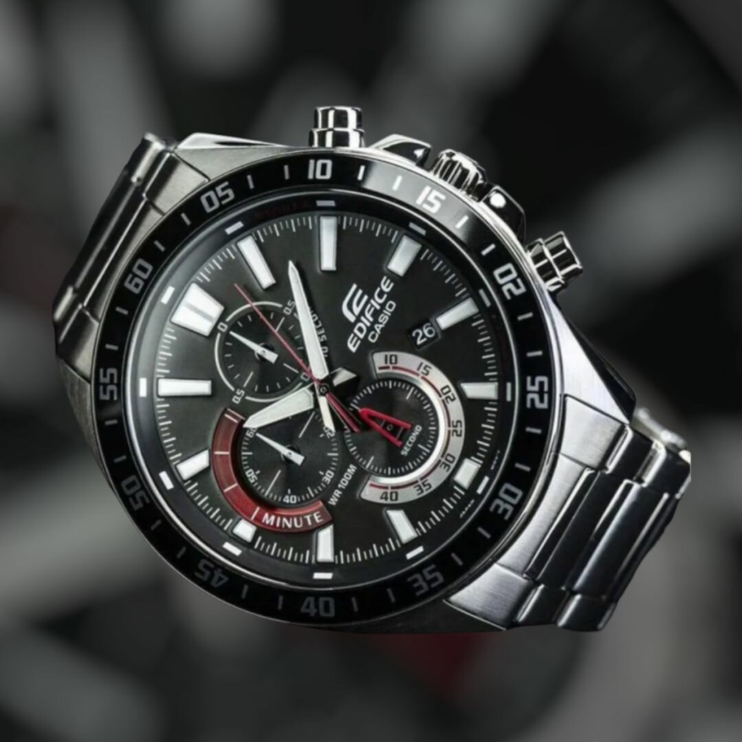 EFR-571DC-1A Casio наручные часы кварцевые WR100 (10 атм) мужские черный отображение числа подсветка стрелок минеральное стекло