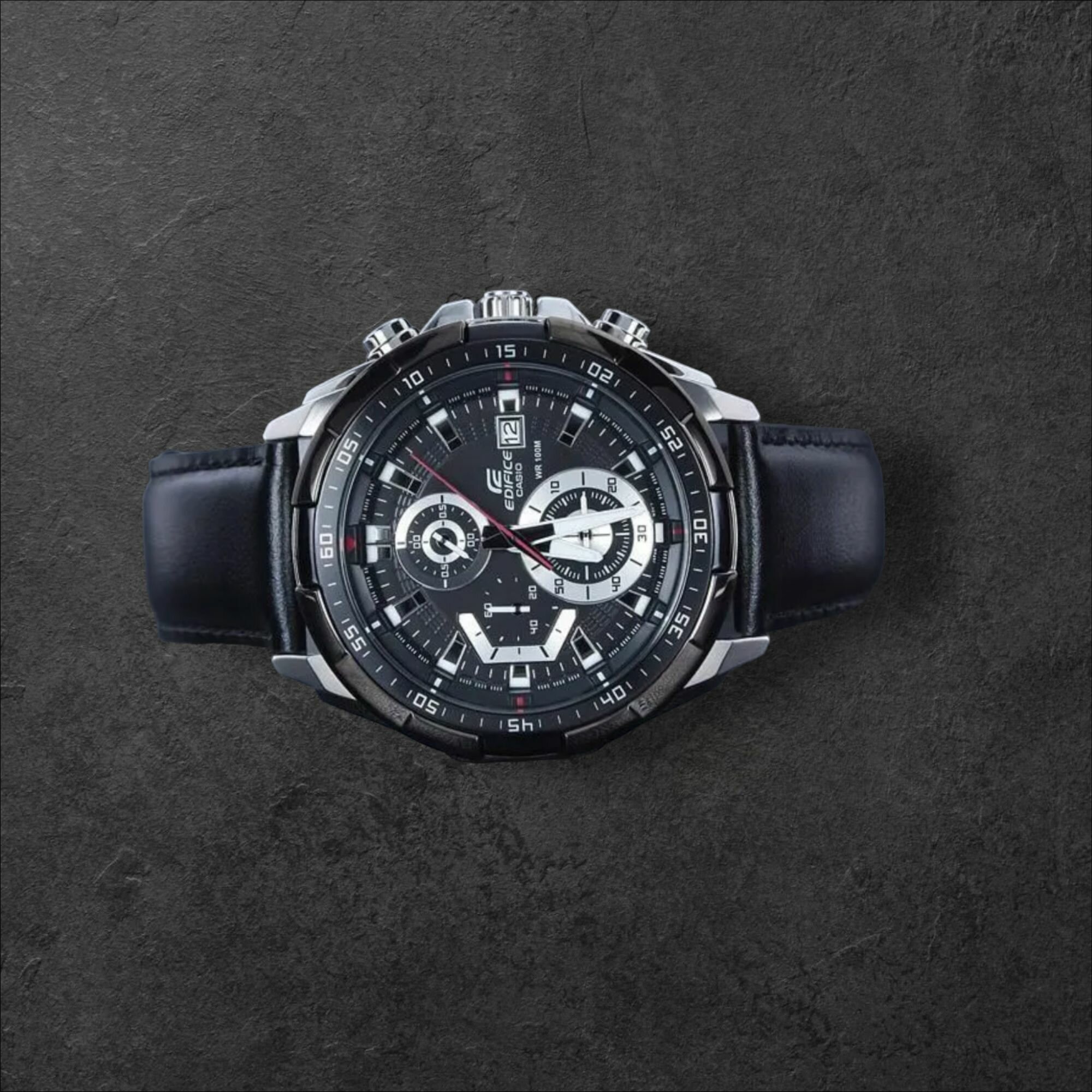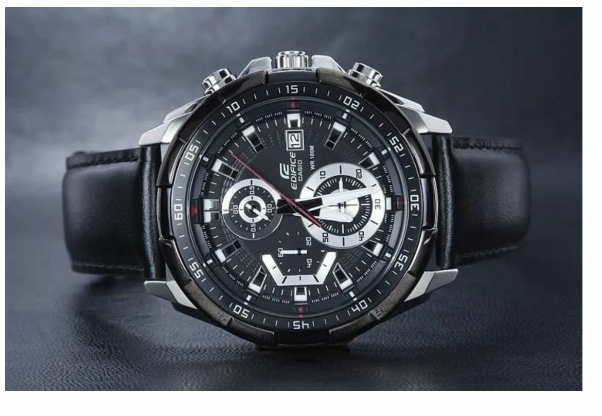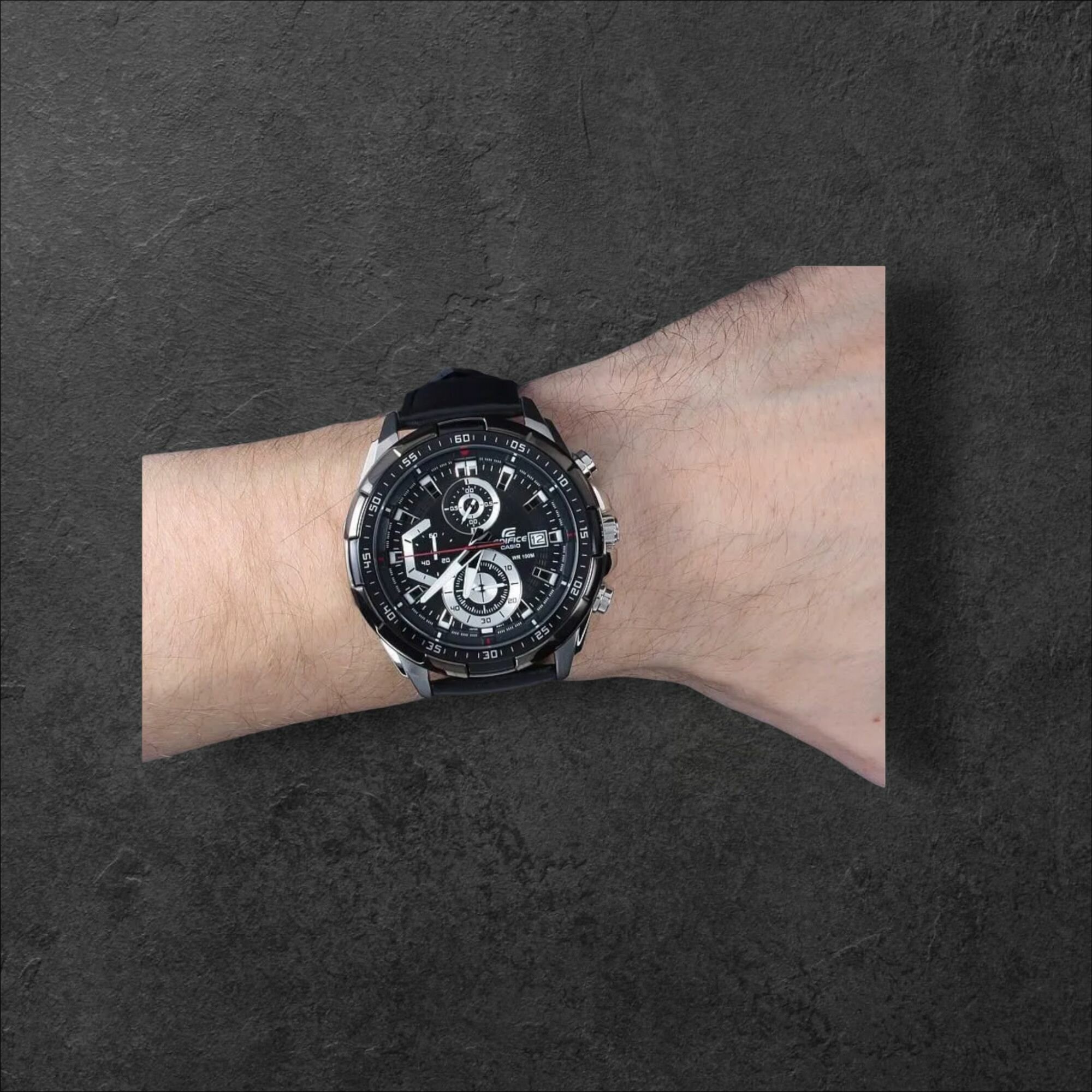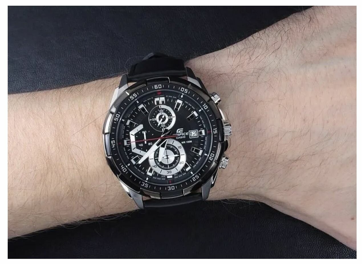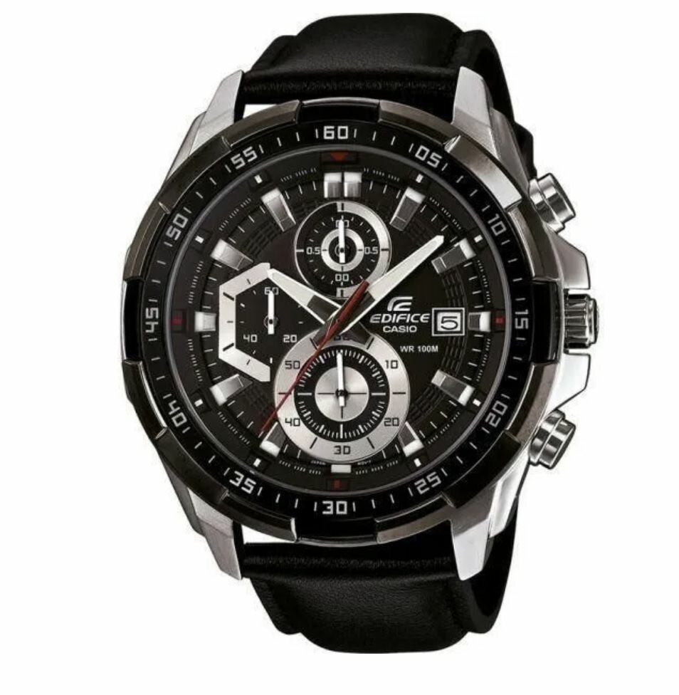 EFR-571DC-1A Casio наручные часы кварцевые WR100 (10 атм) мужские черный отображение числа подсветка стрелок минеральное стекло