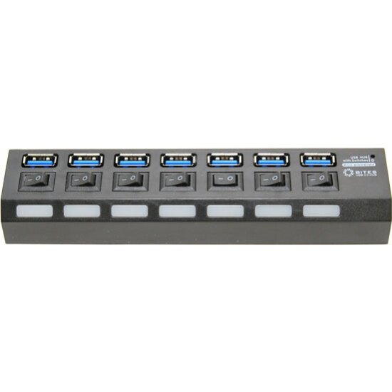 Разветвитель USB3.0 5Bites HB37-303PBK хаб - концентратор 7 портаов USB3.0 + выключатели + блок питания линейка - чёрный