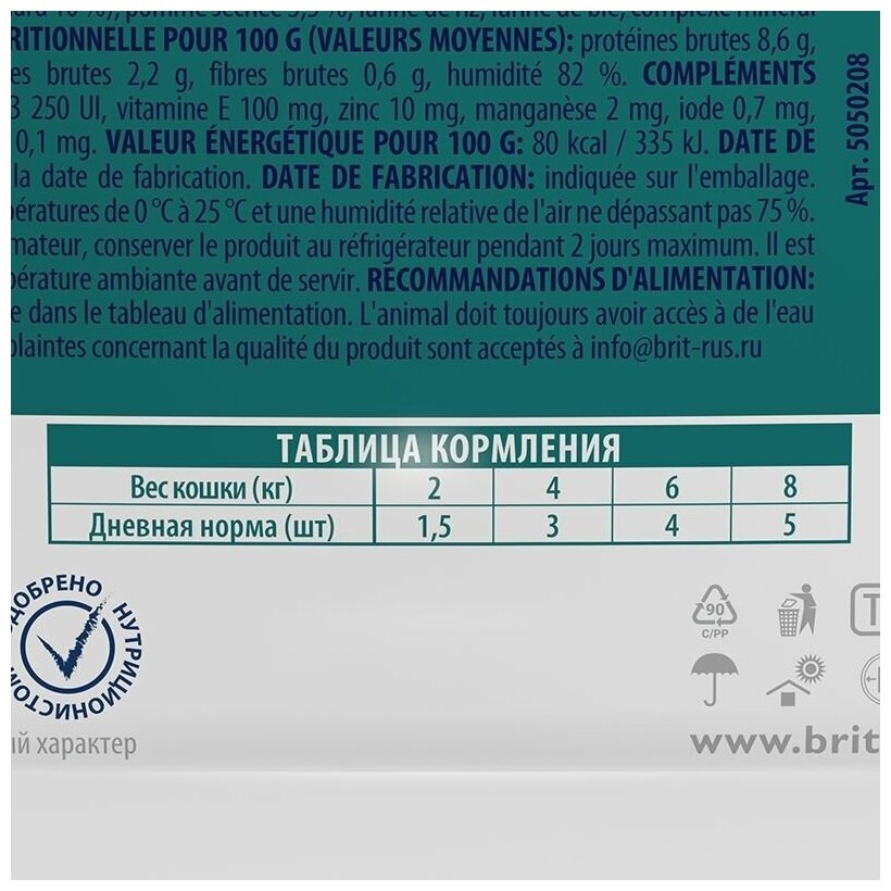 Brit - Паучи для взрослых стерилизованных кошек с уткой и яблоками в желе - 0,085 кг 58577