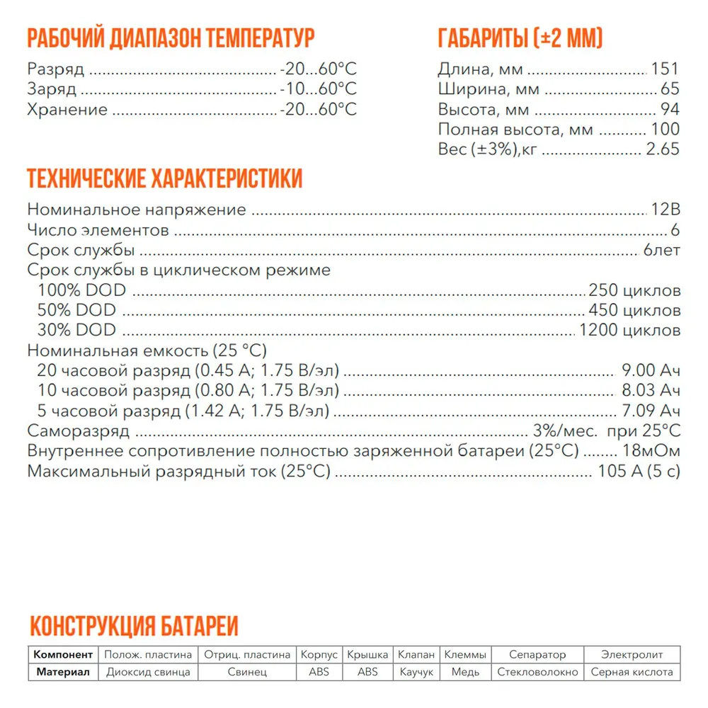Комплект аккумуляторов Delta DTM 1209 12V AGM (9 Ач) - 5шт интересное: