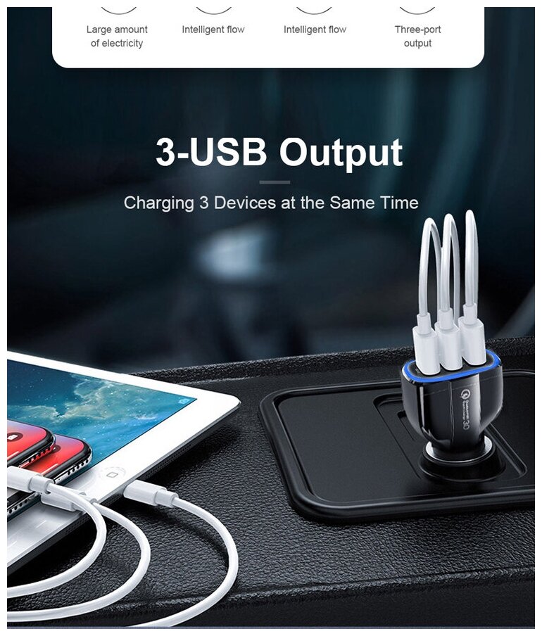 Купить Quick Charge быстрое зарядное устройство (разветвитель прикуривателя) на 3 USB порта 7A 35 Вт
