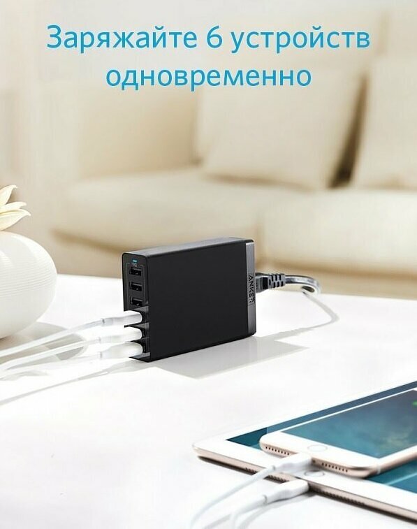 Сетевое зарядное устройство Anker A2123 Power Port 6 60W "быстрая зарядка", черный интересное: