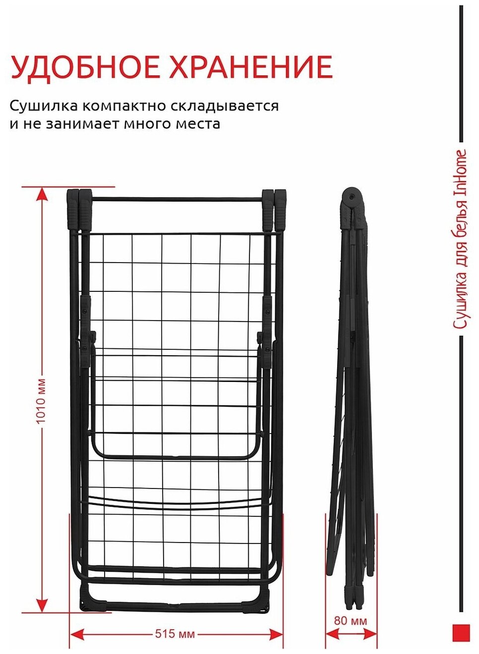 Сушилка для белья Inhome напольная раскладная,181х51х93 см, 21 м черная INCD3/1