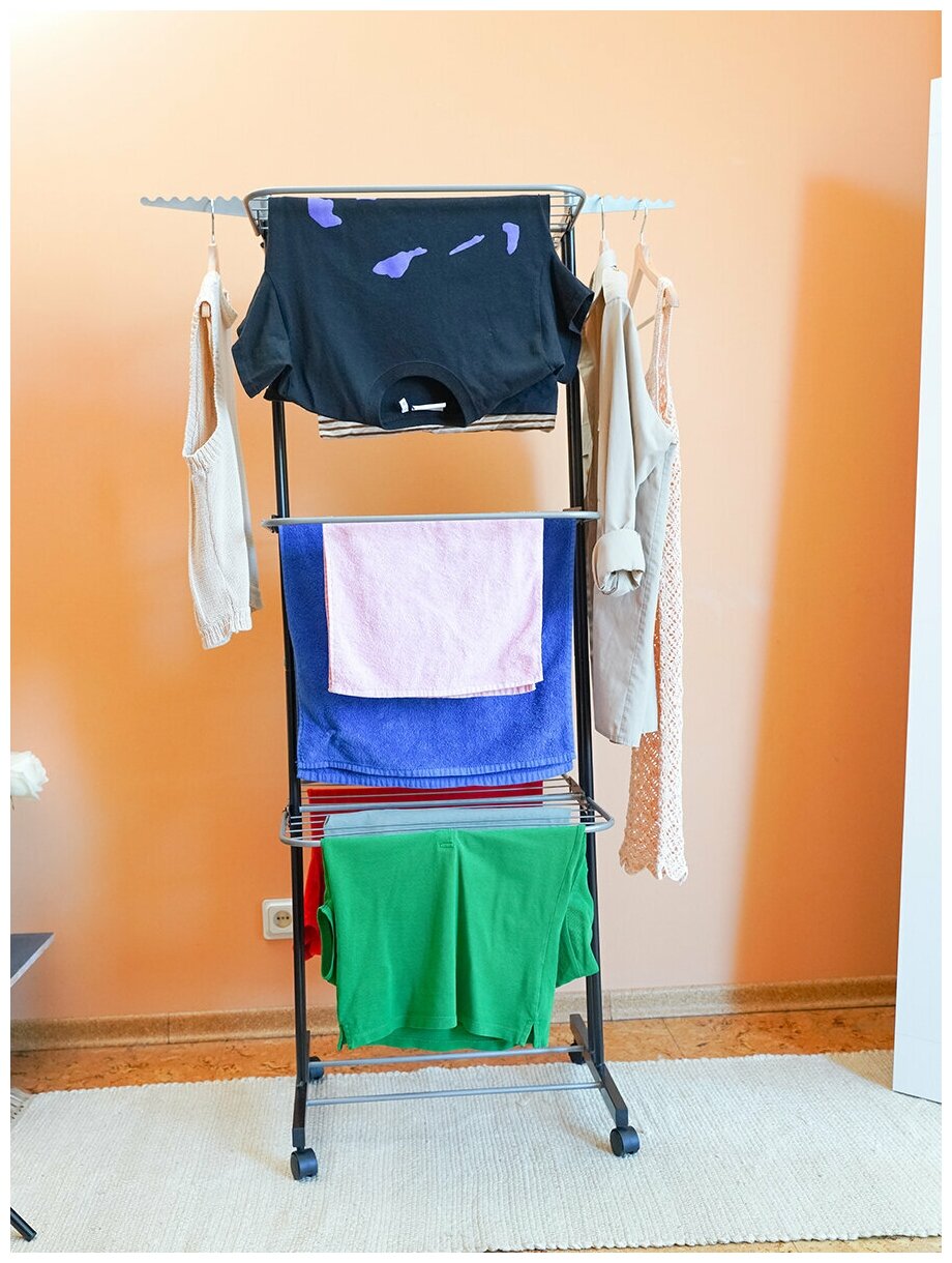 Сушилка для белья напольная на колесиках, вертикальная складная сушка для одежды интересное: