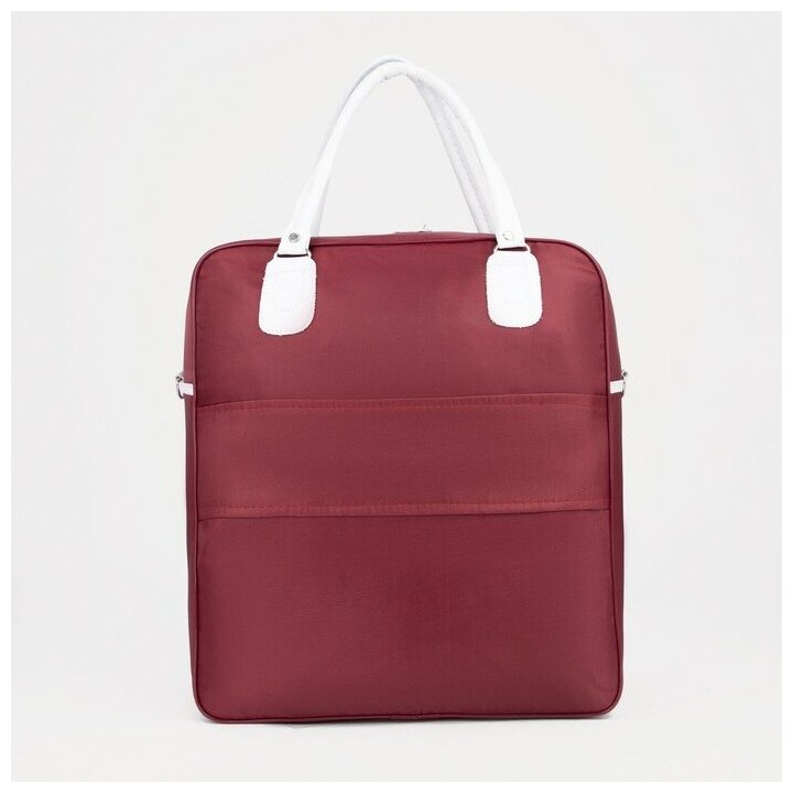 --- Сумка дорожная на молнии, наружный карман, держатель для чемодана, цвет бордовый/белый