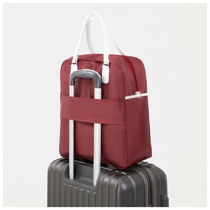 Сумка дорожная на молнии, наружный карман, держатель для чемодана, цвет бордовый/белый интересное: