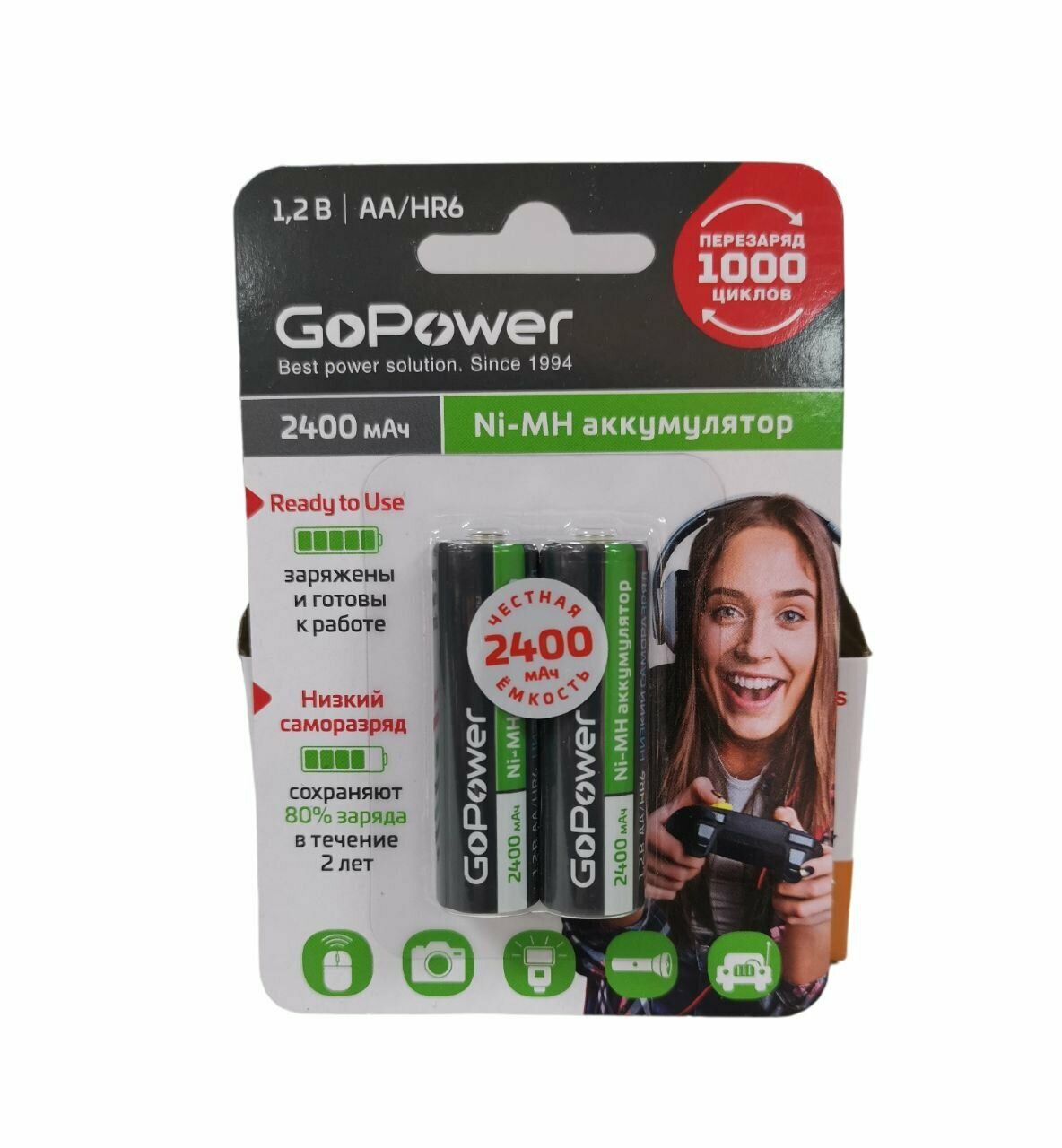 Ниже Вы можете прочитать отзывы на Аккумулятор предзаряженный RTU GoPower HR6 AA BL2 NI-MH 2400mAh - 2шт., ознакомится с подробными характеристиками, посмотреть интересные обзоры и фотографии на Аккумулятор предзаряженный RTU GoPower HR6 AA BL2 NI-MH 2400mAh - 2шт..