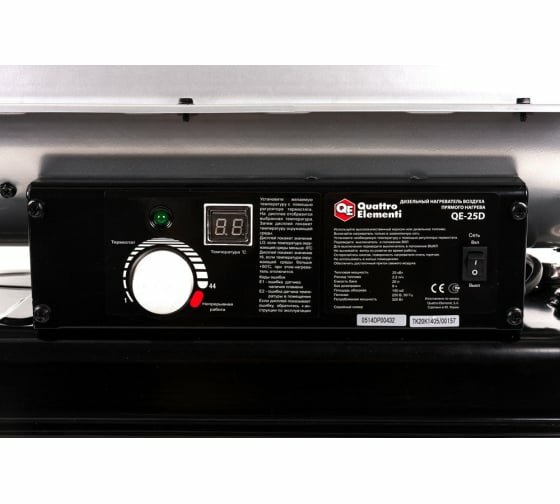 Нагреватель воздуха дизельный прямого нагрева QUATTRO ELEMENTI QE- 25D (25кВт, 400 м.куб/ч, бак 20л, 2,2л/ч, 15,7кг)