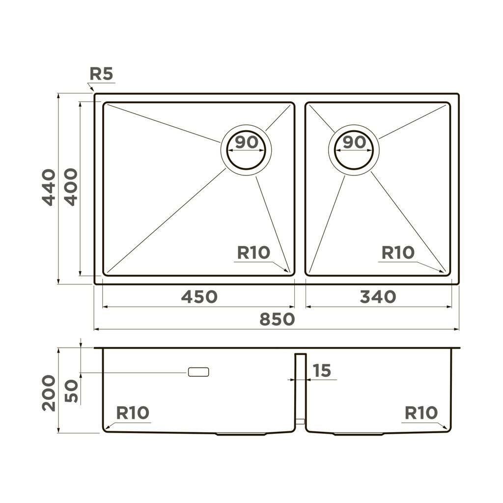 Мойка кухонная прямоугольная Omoikiri Taki 85-2-LB-U/IF-IN Side нержавеющая сталь (4997037)