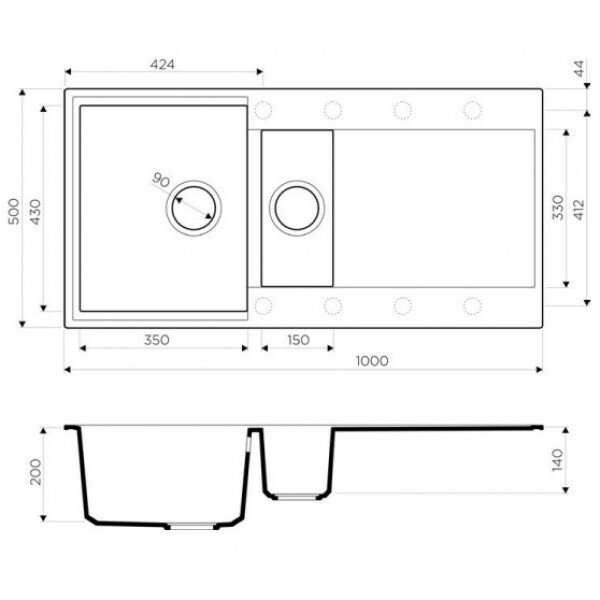 Мойка кухонная прямоугольная Omoikiri Sakaime 100-2-BL черный (4993892) интересное: