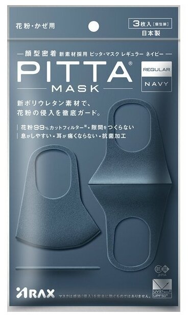 Маска защитная ARAX PITTA MASK NAVY размер средний, 3 шт интересное: