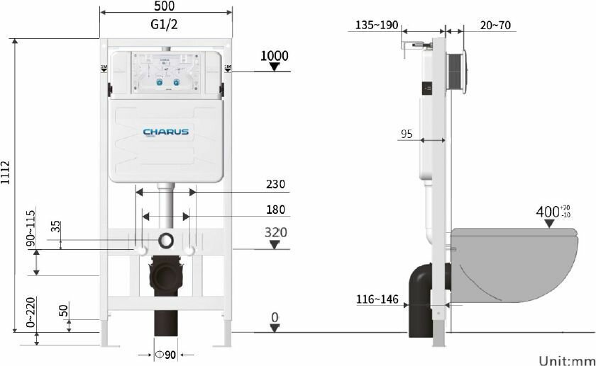 Инсталляция для подвесного унитаза CHARUS CC.300.80.01 интересное:
