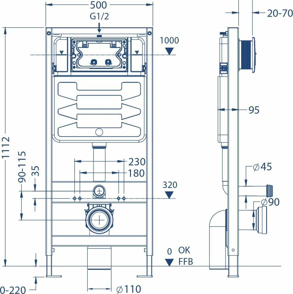 | Дополнительная информация | стальная рама; цельнолитой смывной бачок из ПНД пластика; встроенная арматура; набор крепежных элементов; комплект шпилек для крепления керамики; набор соединительных патрубков |