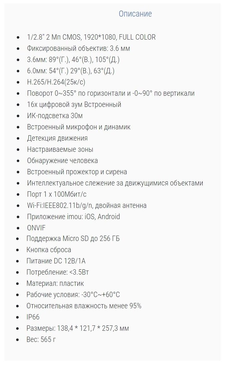 Интернет IP-камера с облачным сервисом Cruiser 2MP(IPC-S22FP-0360B-imou) интересное: