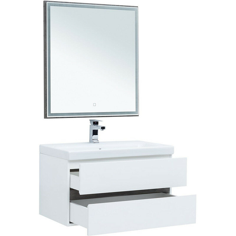Тумба под раковину Aquanet Беркли 80 белый глянец/дуб рошелье (254290)