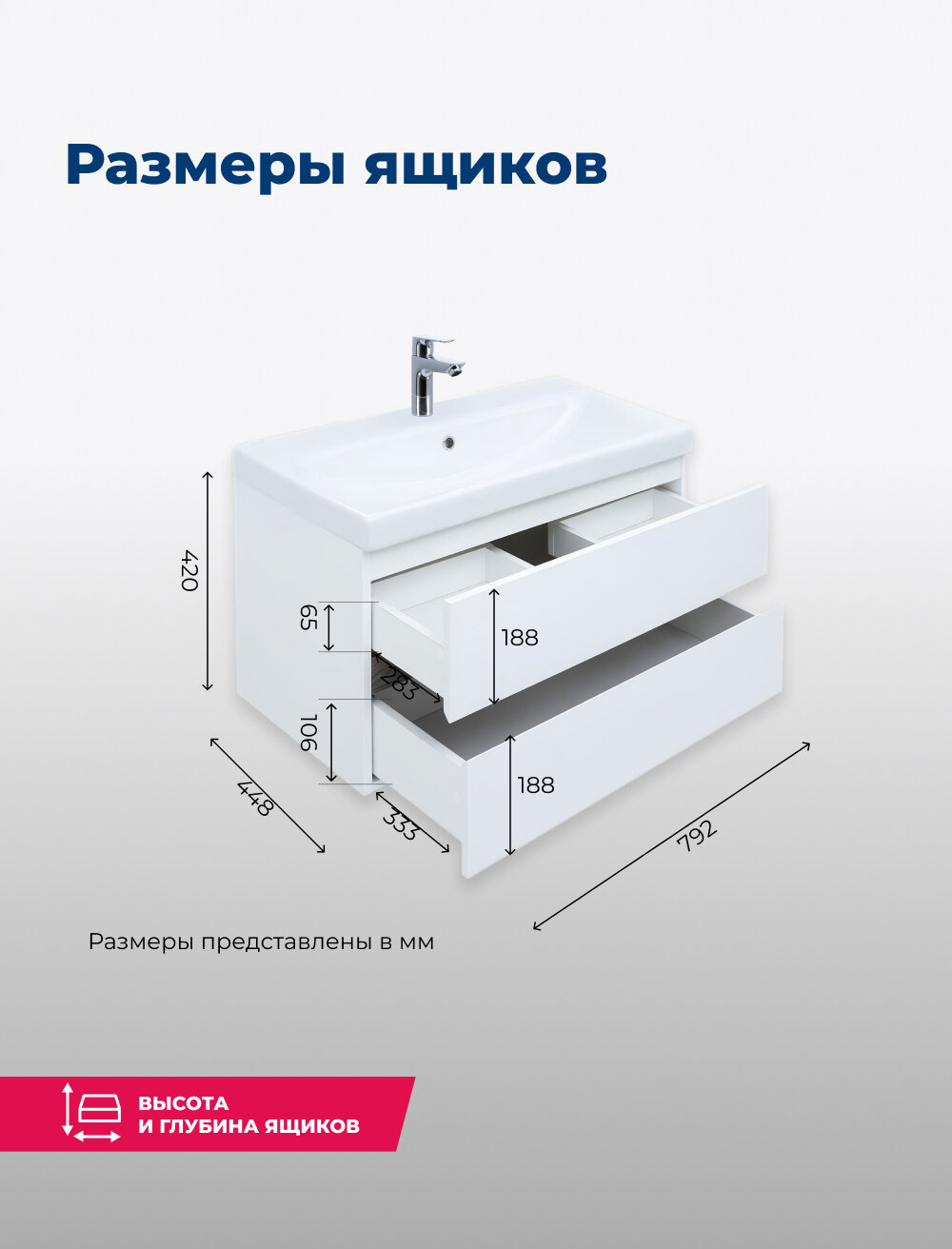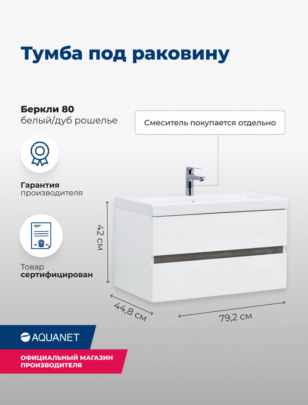 Тумба под раковину AQUANET Беркли 80 Белый/Дуб рошелье Размеры: Высота 420мм Глубина 448мм Ширина 792мм