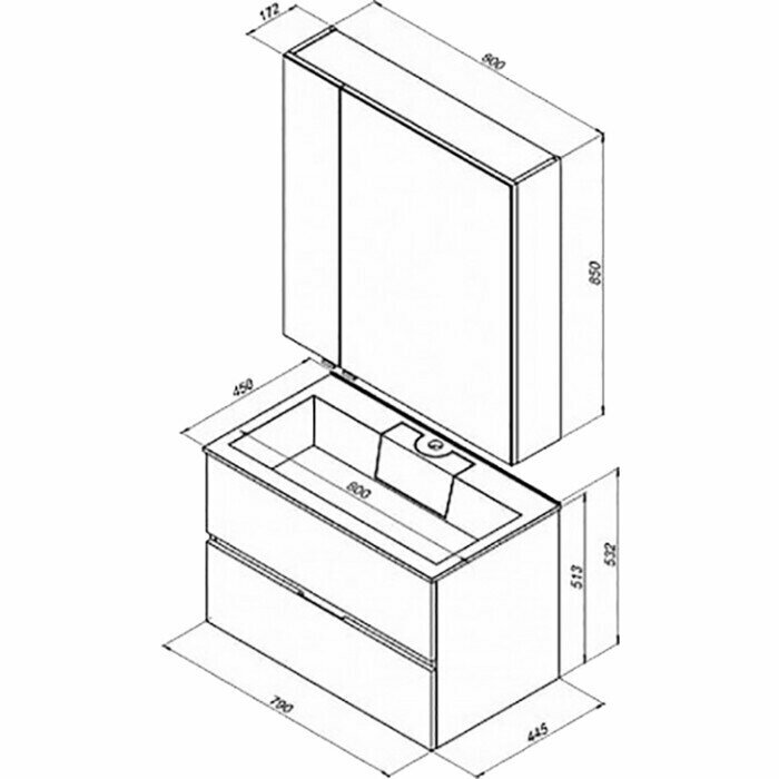 | Комплектация | Тумба под раковину, 2 выдвижных ящика, раковина в комплект не входит |