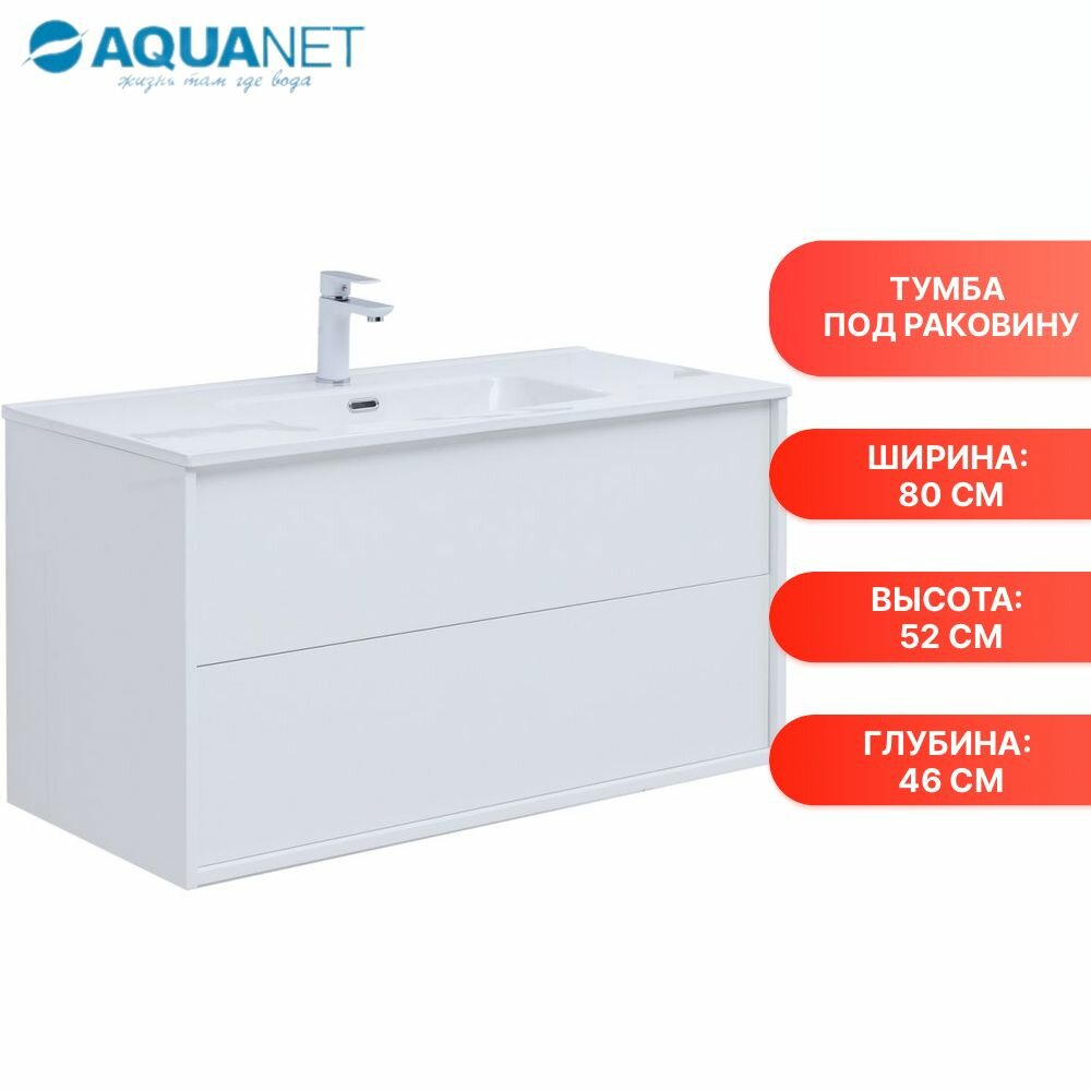AquaNet Тумба Lino 80 (Flat) белый глянец (287542)
