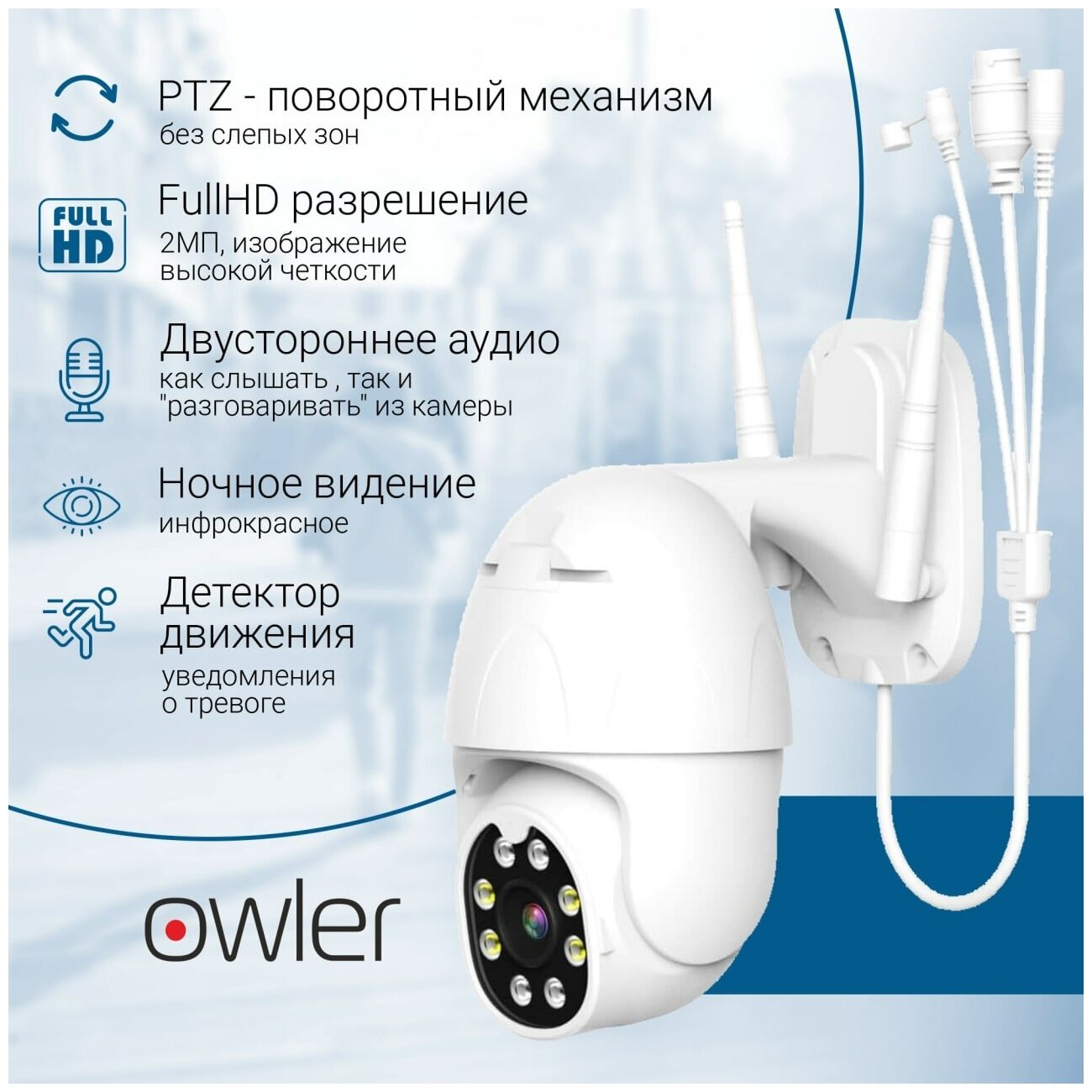 Wi-Fi камера видеонаблюдения Owler Smart Street RoboCam 2Мп поворотная уличная; ночная съемка, детекции движения, двустороннее аудио, удаленное управление
