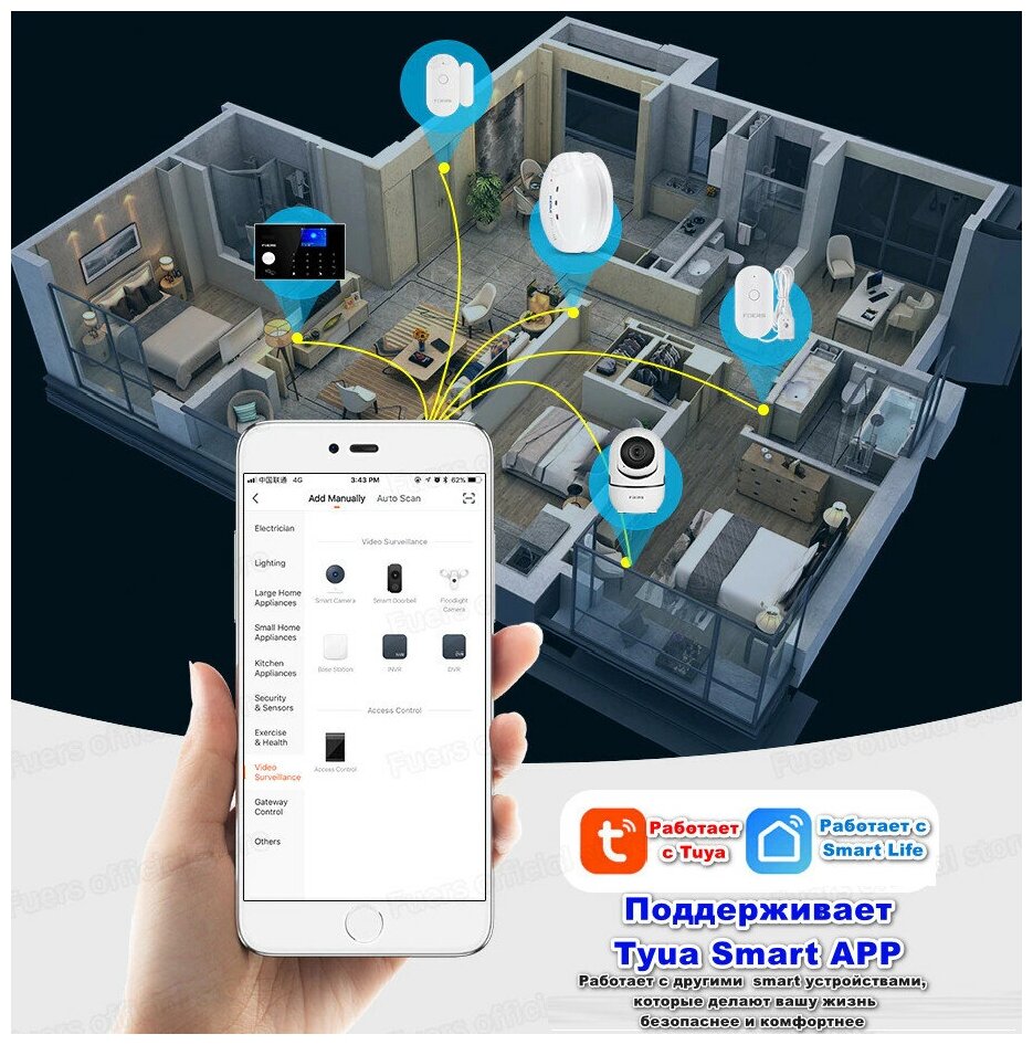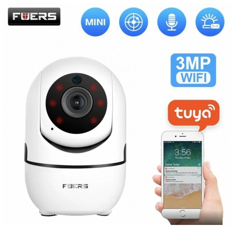 Умная Беспроводная IP камера Fuers, 3MP, Tuya, Wi-Fi, умный дом, автоматическое отслеживание интересное: