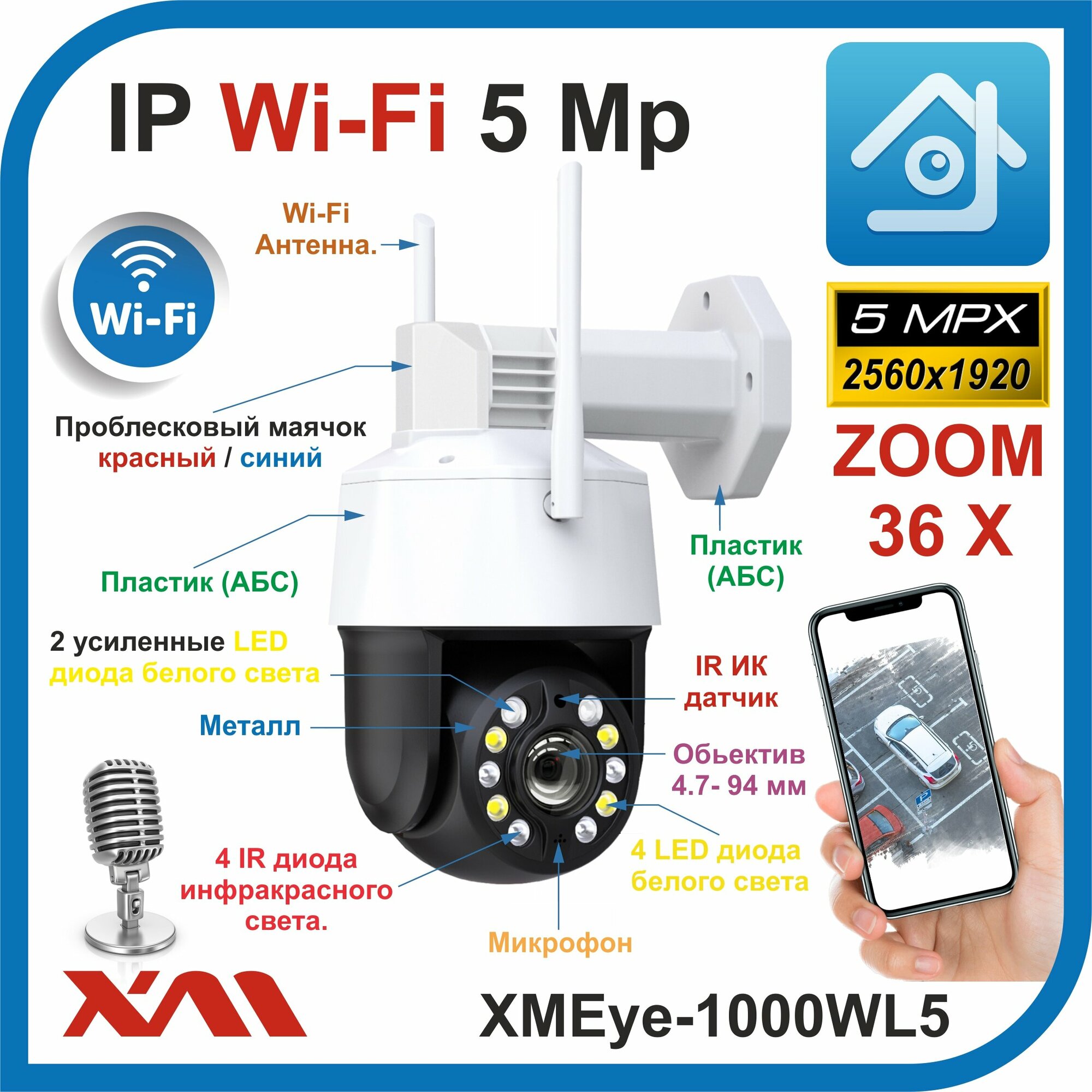 Уличная поворотная камера видеонаблюдения IP Wi-Fi 5Mpx 1920p XMEye-1000WL5. ZOOM 36x. Цвет: Черный интересное: