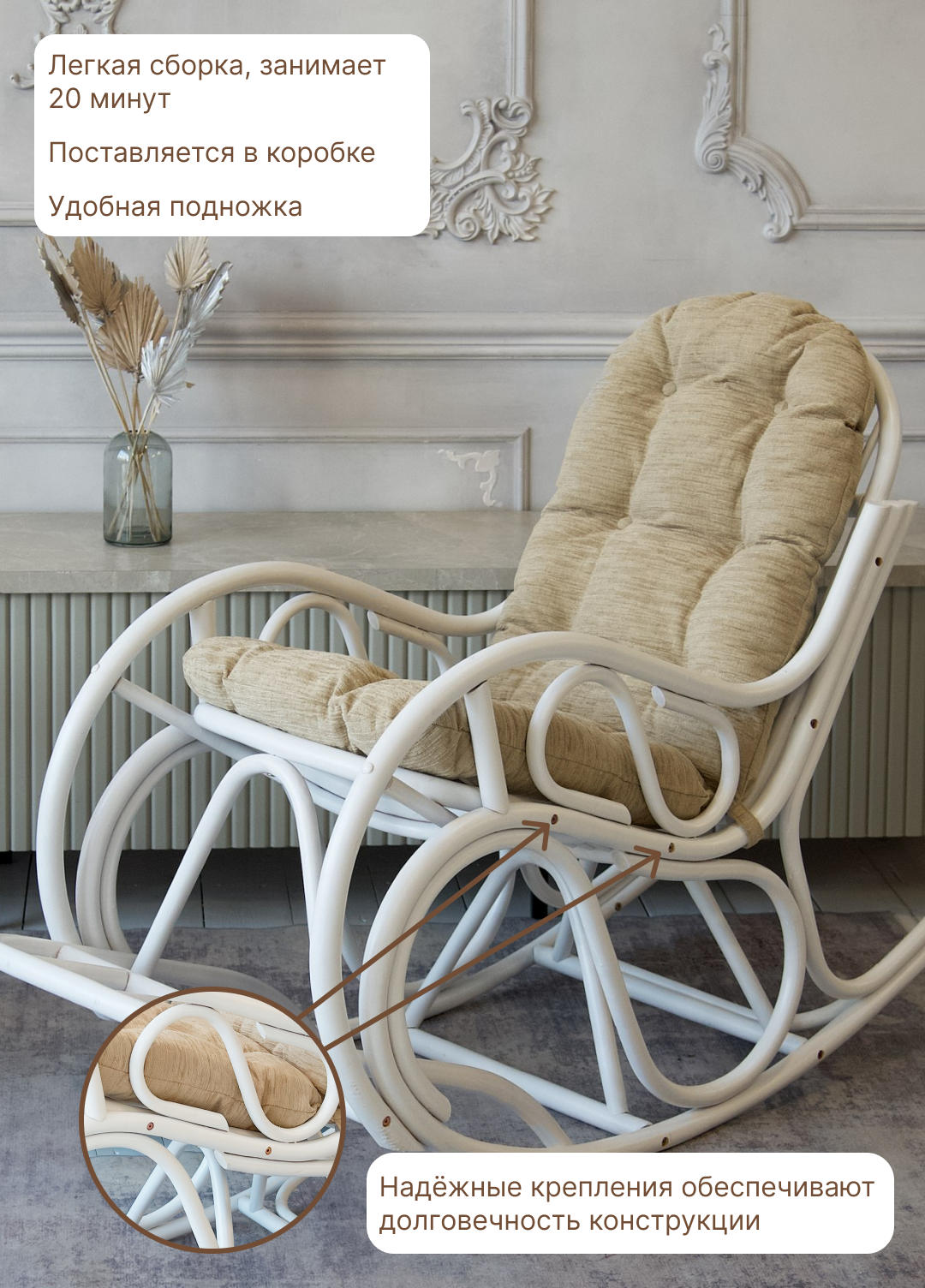| Комплектация | разборное кресло-качалка со съемной подушкой |
