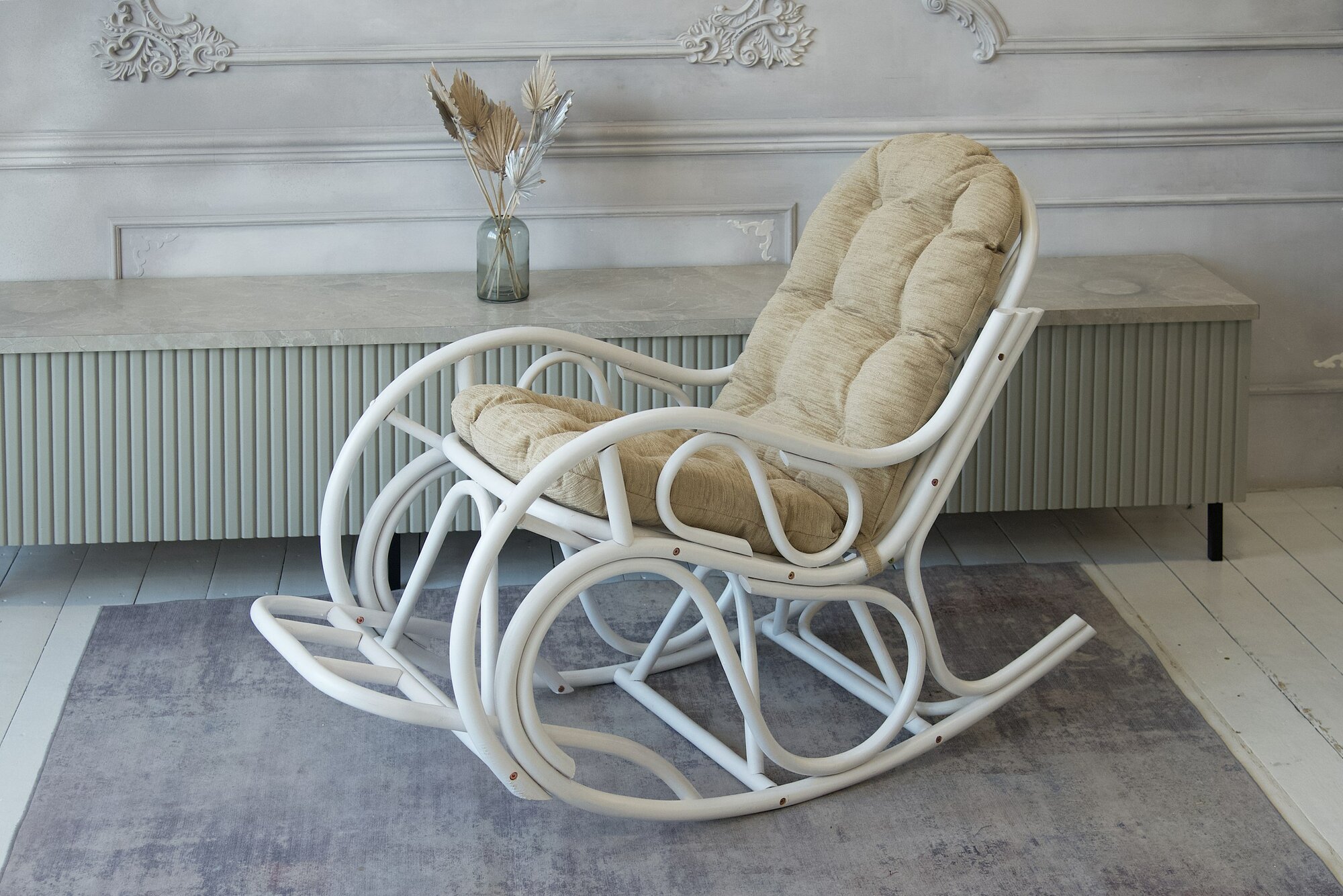 Кресло-качалка из натурального ротанга 05/05В разборное, цвет белый интересное: