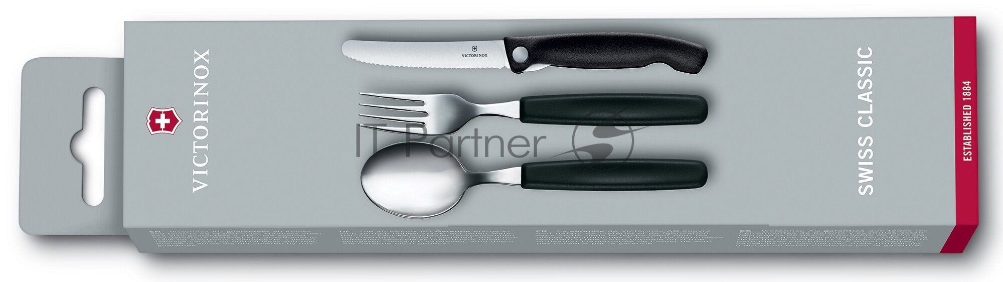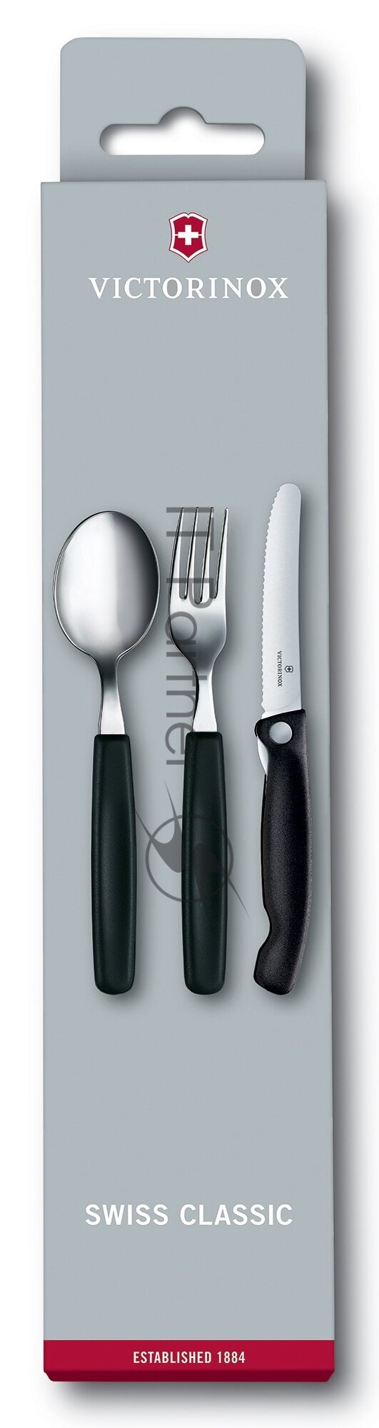 Купить Набор из 3 столовых приборов VICTORINOX Swiss Classic: складной нож для овощей, вилка, ложка, чёрный