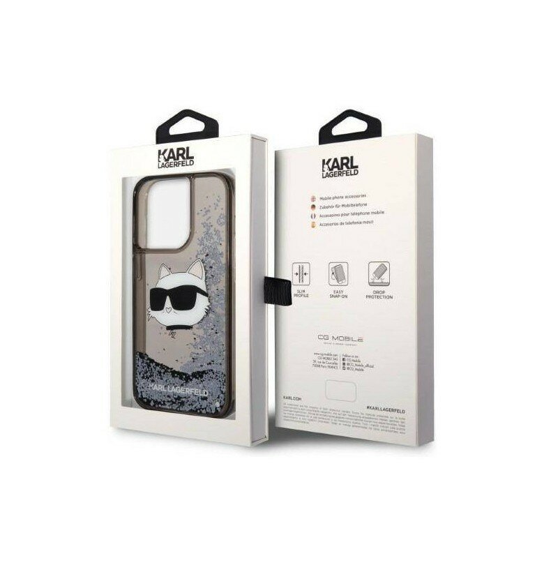 Купить Lagerfeld для iPhone 14 Pro чехол Liquid glitter NFT Choupette head Hard Black, шт