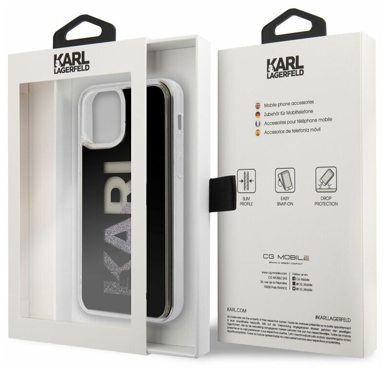 Купить Чехол Karl Lagerfeld Liquid Glitter Karl logo Hard для iPhone 12 | 12 Pro, черный